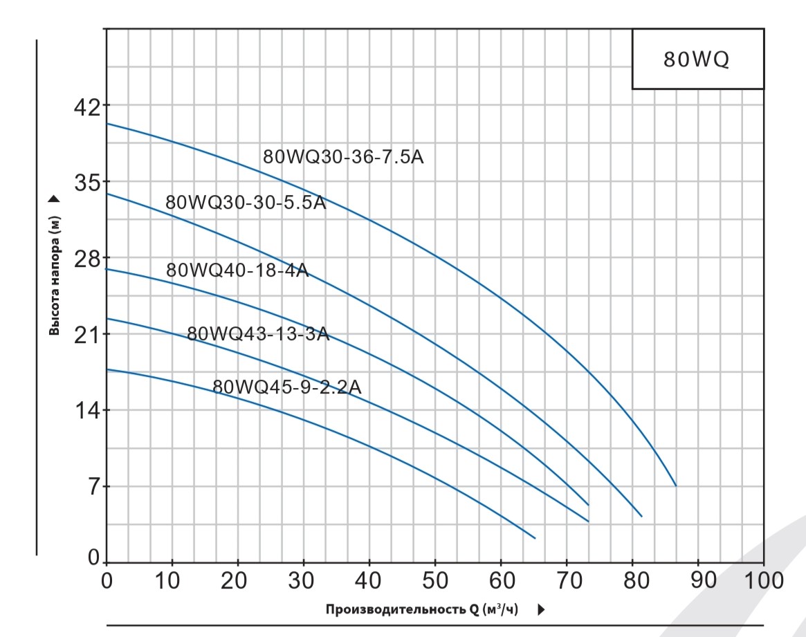 Мощность насоса Purity 80WQ30-36-7.5A составляет 7.5 кВт, а напряжение - 380В. Насос обеспечивает высоту напора 36 м, производительность 30 м³/ч.