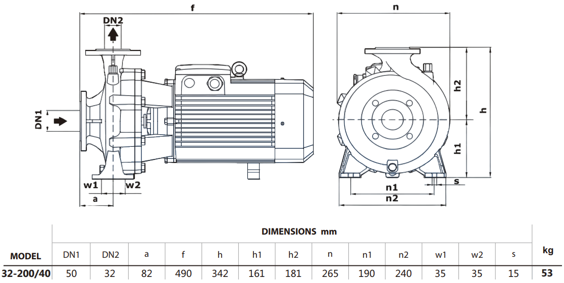 Центробежный насос серии PSTG-R5 имеет общий вал и одно рабочее колесо из стали AISI 304. Конструкция насоса моноблочного типа с прямым присоединением двигатель-насос, патрубки фланцевые.