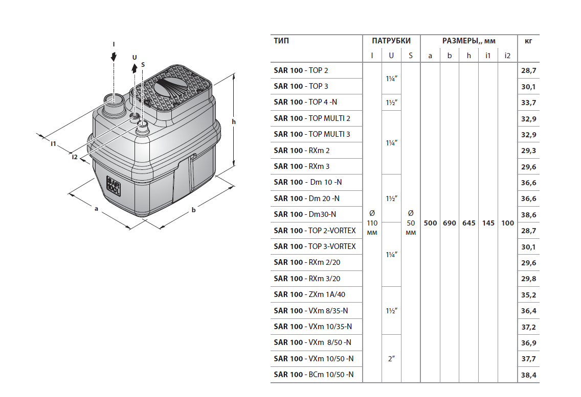 Канализационная насосная станция Pedrollo SAR 100 - TOP 3 - VORTEX