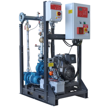 Противопожарная насосная станция - это оборудование, которое способно обеспечить гарантированную подачу воды в систему автоматического пожаротушения при возникновении экстренной ситуации. Для бесперебойной работы противопожарной насосной станции данное оборудование комплектуют специальными модулями, которые обеспечивают автоматическую работу установки и контролируют своевременную подачу воды. В состав противопожарной насосной станции входит основной и резервный насос. Насосные станции такого типа могут похвастаться своей надёжностью, именно поэтому они считаются более приоритетным оборудованием (по сравнению с системой гидрантов) в данной сфере применения.