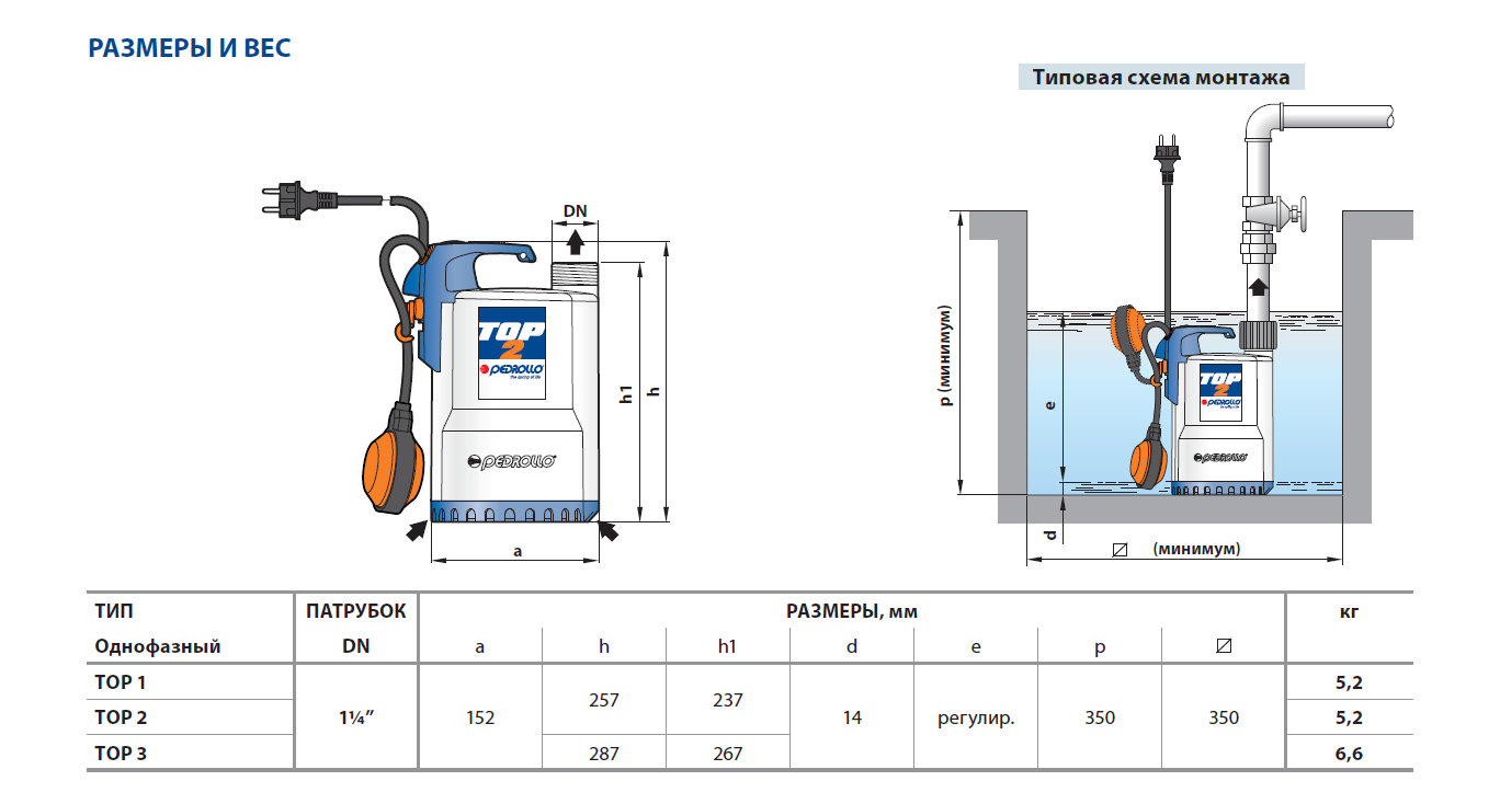 - до 5 м для TOP 4-5 (с кабелем электропитания соответствующей длины) - Температура жидкости до +40 °C (Температура жидкости до +90 °C кратковременно до 3 минут)