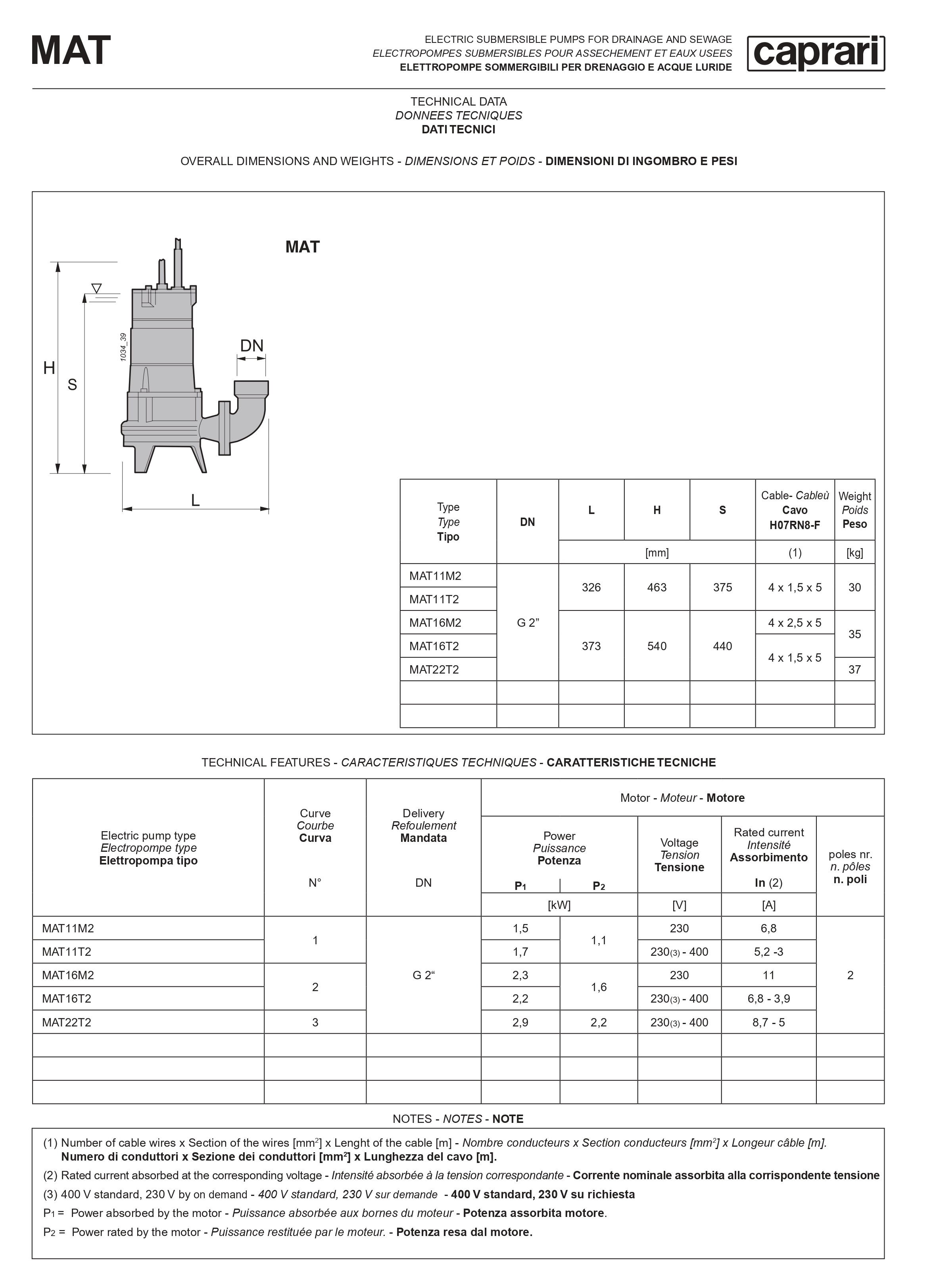 Дренажные насосы Caprari для загрязненной воды D, M & MAT MAT