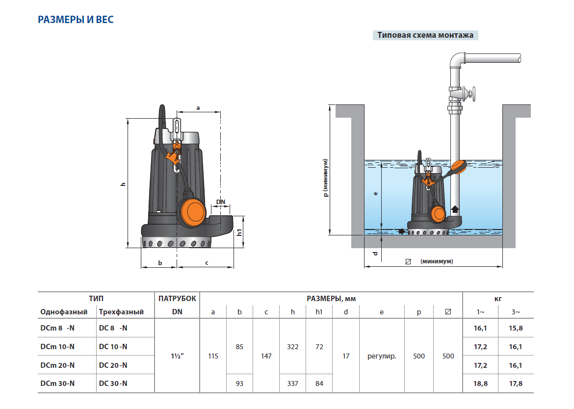 - Минимальный уровень погружения при непрерывном режиме работы 220 мм
