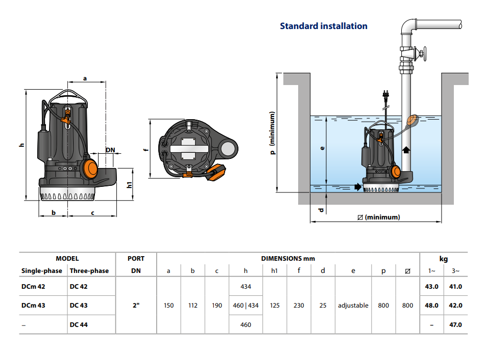 - Минимальная глубина погружения для непрерывной работы: 220 мм, 300 мм (DC 42-43-44)