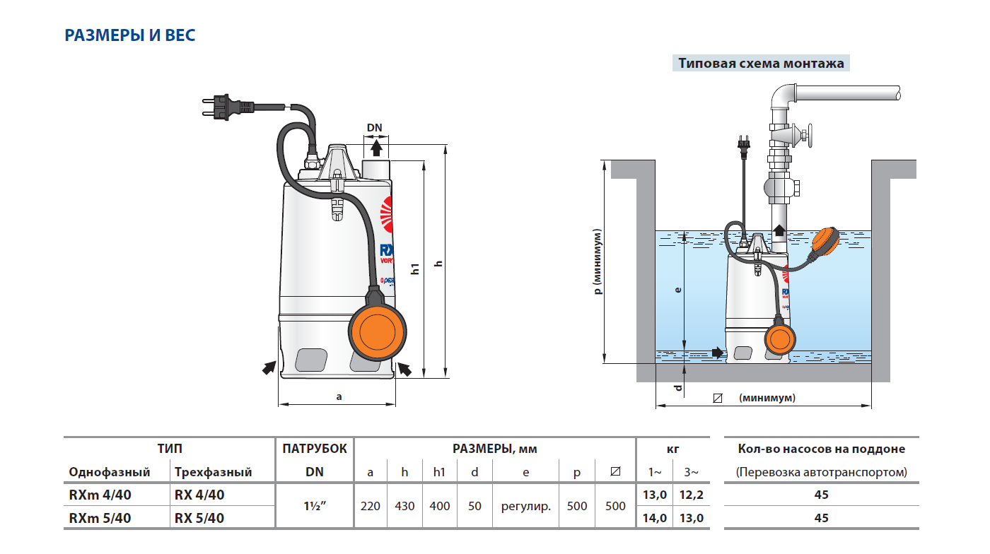 Насос дренажный Pedrollo Vortex RX предназначены для откачки загрязненной воды без абразивных частиц. Используемые конструктивные решения гарантируют простоту в эксплуатации и безопасность работы благодаря полному охлаждению двигателя и двойному уплотнению вала. Эти насосы применяются для стационарной установки, для экстренного осушения небольших затопленных участков (зданий, подвалов, гаражей), откачки бытовых сточных вод (посудомоечные и стиральные машины), для откачки воды из дренажных колодцев, бассейнов для подъема загрязненных вод с твердыми частицами во взвешенном состоянии. Модель RX 4/40 поставляется с кабелем электропитания длиной 10 м. Корпус насоса - нержавеющая сталь AISI 304, рабочее колесо - Vortex нержавеющая сталь AISI 304, ведущий вал - нержавеющая сталь AISI 304.Область применения