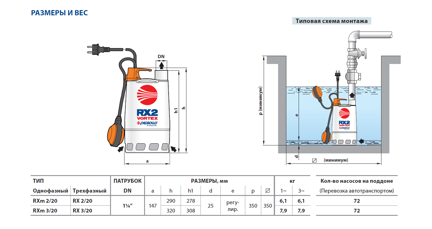 Дренажный насос Pedrollo RXm 2/20 используется для подъема слабозагрязненной, химически неагрессивной воды. Насос рассчитан на напряжение в сети 220-230В при мощности 0,37 кВт.- Область применения RXm 2/20: