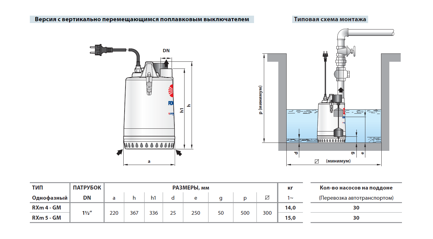 Дренажный насос Pedrollo RXm 5-GM - это модификация RXm 5, оборудованная магнитным поплавком уровня.