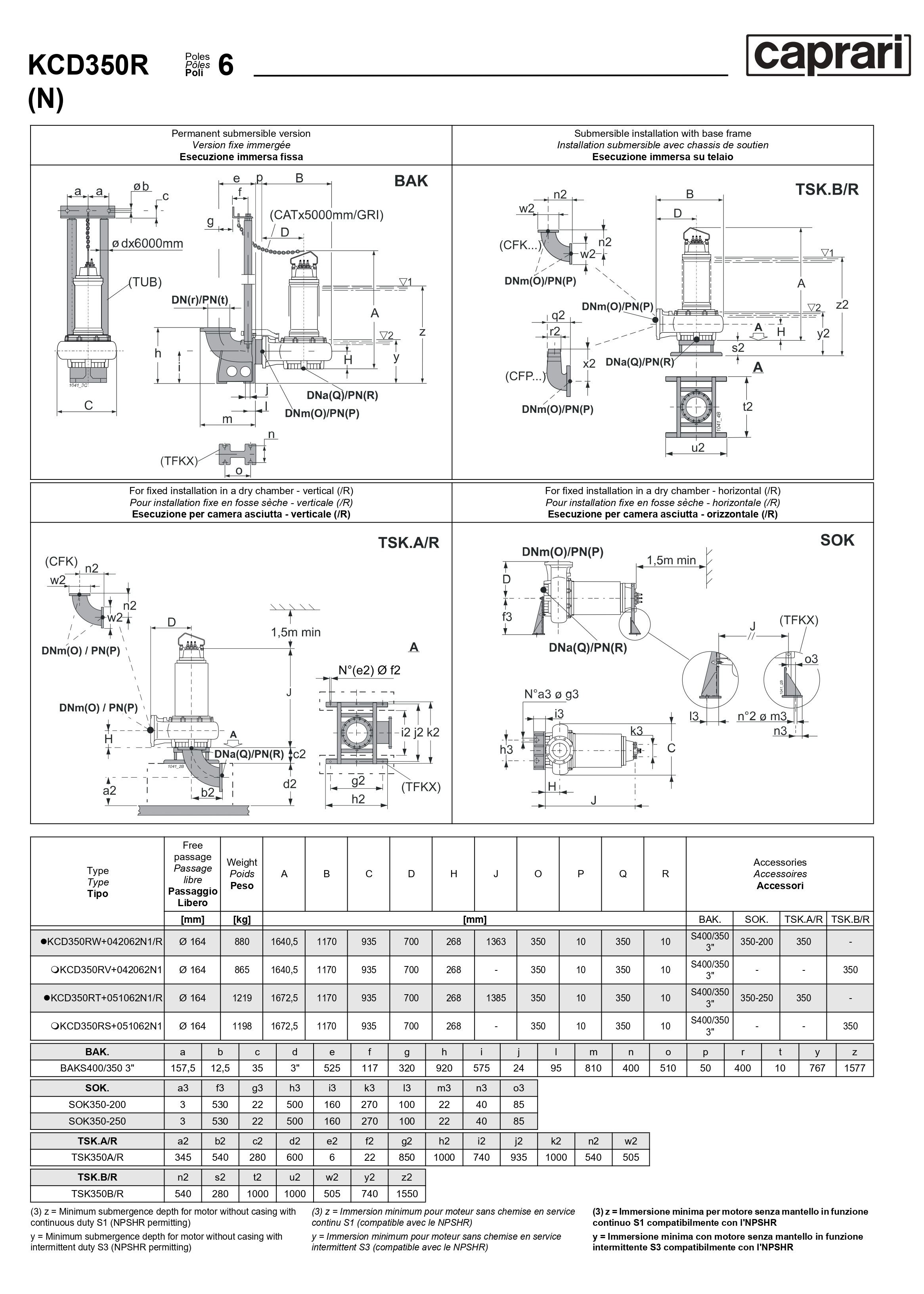 Погружные канализационные элктронасосы Caprari KCD350R(N)