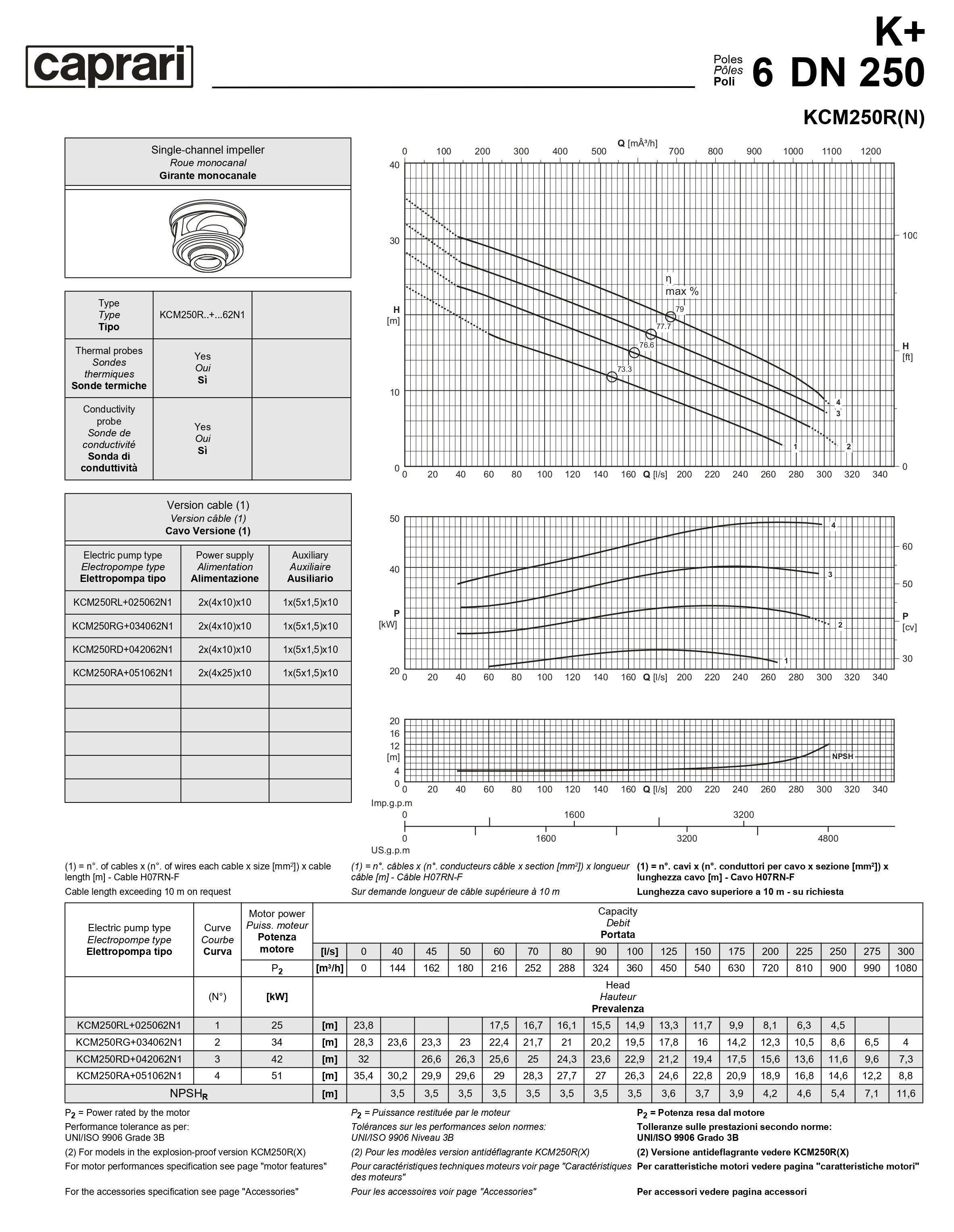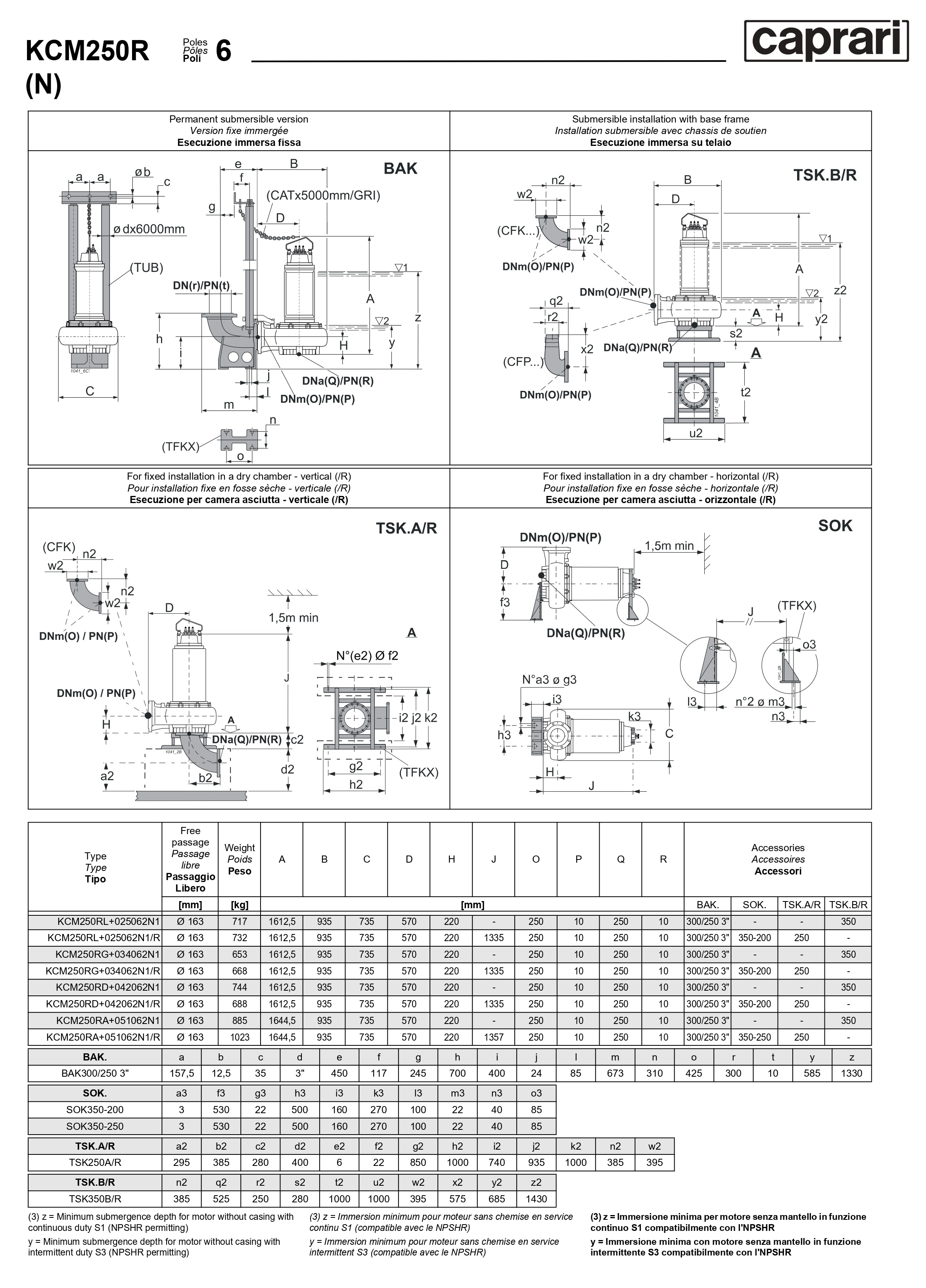 Погружные канализационные элктронасосы Caprari KCM250R(N)