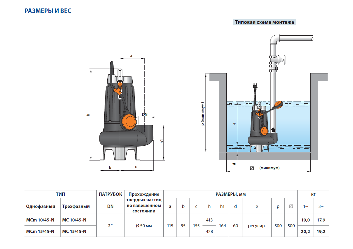 - Минимальный уровень погружения при непрерывном режиме работы 300 мм