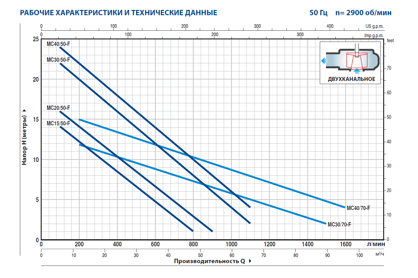 Фекальные погружные насосы высокого давления Pedrollo серии MC-F – идеальное решение для систем отвода канализационных и поверхностных вод. Их производительность достигает 96 м3/ч, что эквивалентно 1600 литров/мин.Благодаря двухканальному рабочему колесу отлично справляются с жидкостями, имеющими примесь грязи, ила. Широко применяются не только в бытовой сфере (для обслуживания частных домов, коттеджей и дач), а также в коммунальном хозяйстве и для перекачки отходов и сточных вод из гаражей, парковок и моек.
