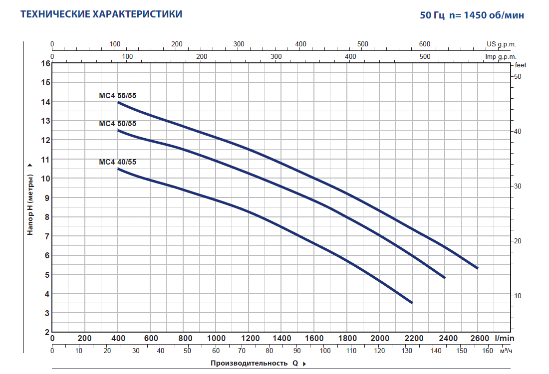 Погружной фекальный дренажный насос Pedrollo MC4 имеет отличительную особенность - 4-полюсной электродвигатель, работающий с частотой 1450 об/мин. Благодаря этим уникальным техническим характеристикам насос способен давать производительность до 300 м³/ч при мощности 9,2 кВт.