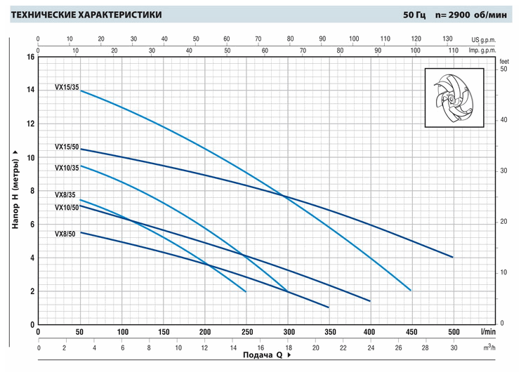- до 50 мм для VX /35-N - Минимальный уровень погружения при непрерывном режиме работы: