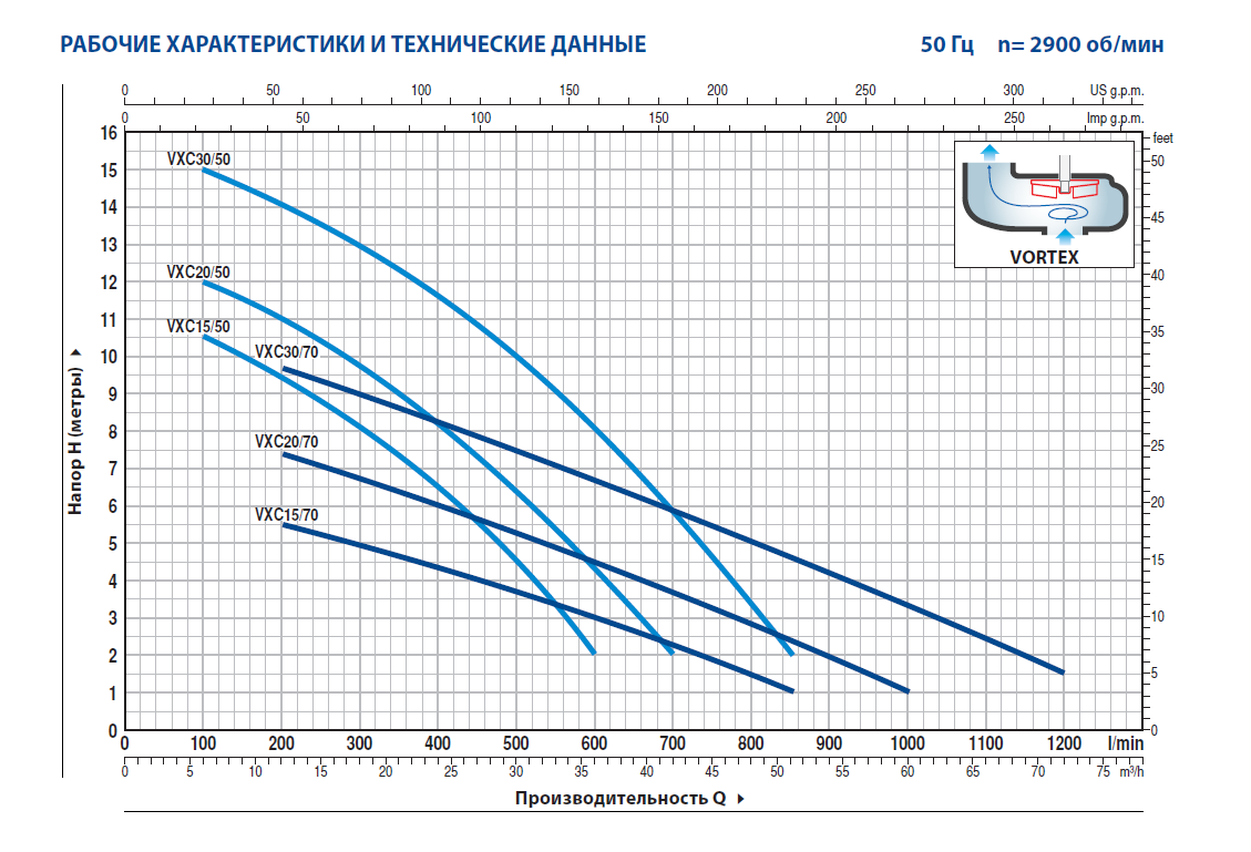 Модели VXC /70 способны пропускать твердые частицы диаметром до 70 мм, что является максимальным показателем в линейке непромышленного оборудования.