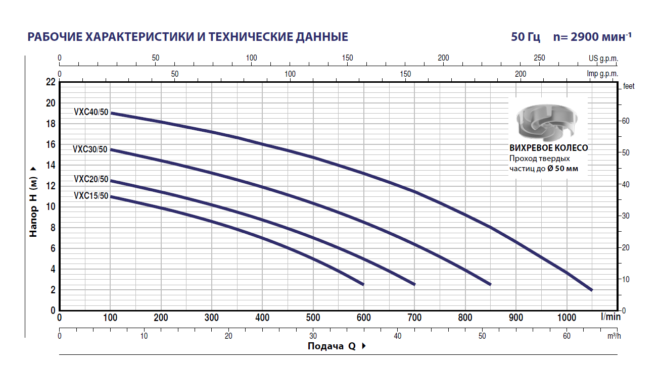 Фекальный насос Pedrollo VXC – это центробежный погружной насос в корпусе из толстого чугуна с открытым рабочим колесом типа Vortex. Насос рассчитан на профессиональное применение, он откачивает сточную, грязную воду с содержанием взвешенных твердых и волокнистых частиц размером до 50 мм.