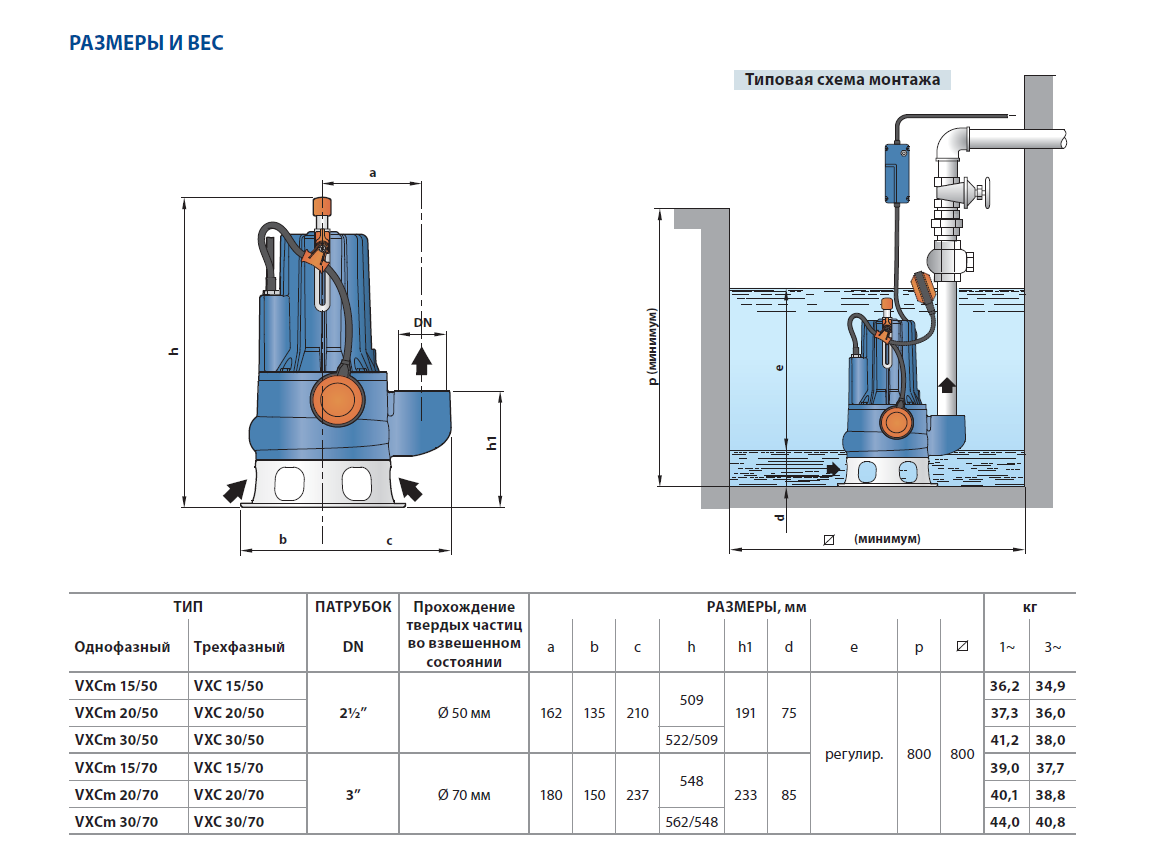 Модели VXC /70 способны пропускать твердые частицы диаметром до 70 мм, что является максимальным показателем в линейке непромышленного оборудования.