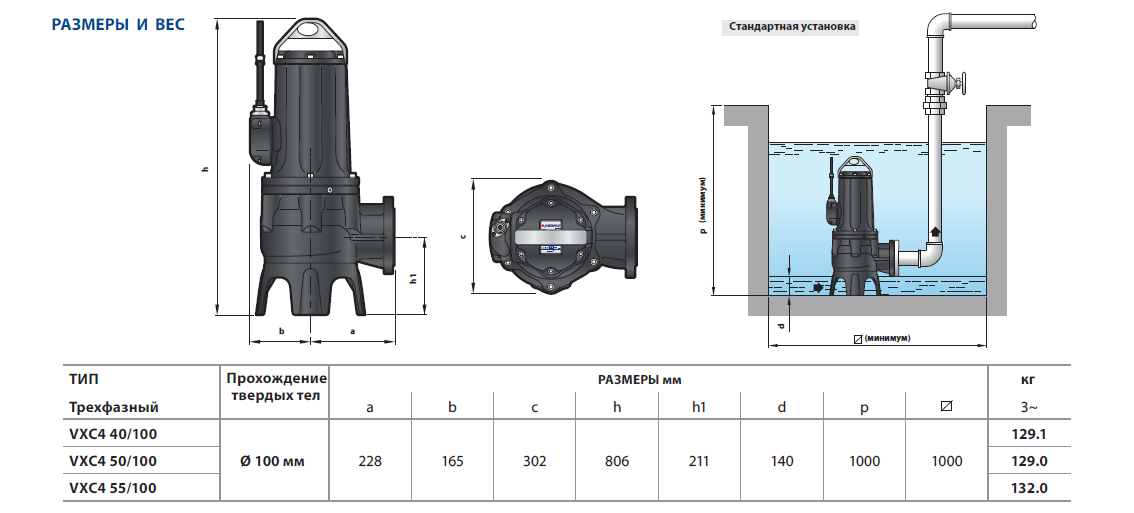 Pedrollo VXC4 — 4-полюсной погружной фекальный насос из чугуна Pedrollo VXC4 для бытового и промышленного использования с жидкостями со взвесью твердых частиц. Они подходят для установки в канализацию, туннели, земляные работы, каналы, подземные автостоянки и т.д.