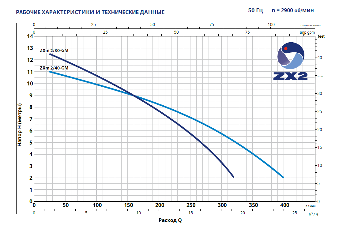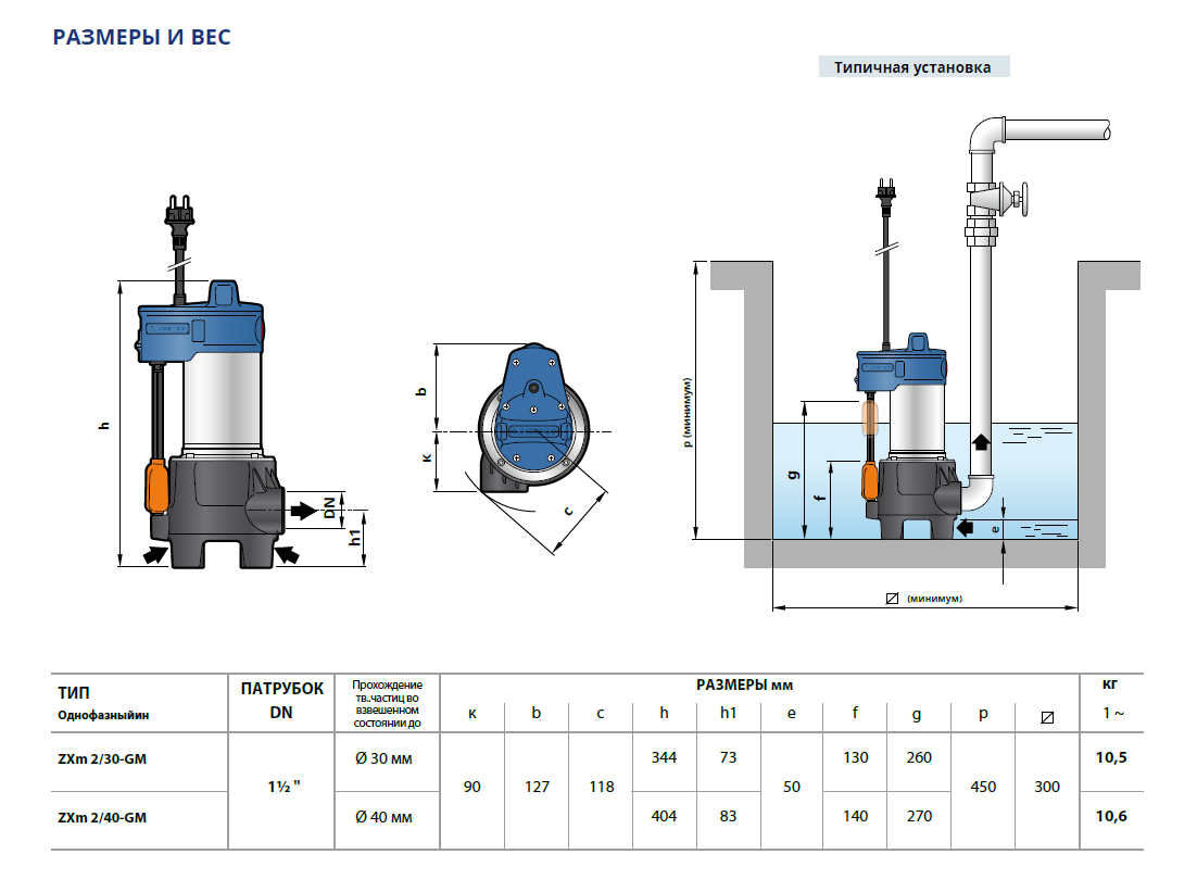- до 40 мм для ZXm 2/40-GM - Минимальный уровень погружения при непрерывном режиме работы: