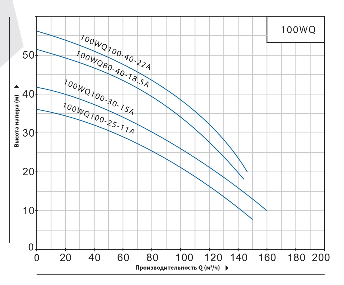 Мощность насоса Purity 100WQ100-30-15A составляет 15 кВт, а напряжение - 380В. Насос обеспечивает высоту напора 30 м, производительность 100 м³/ч.