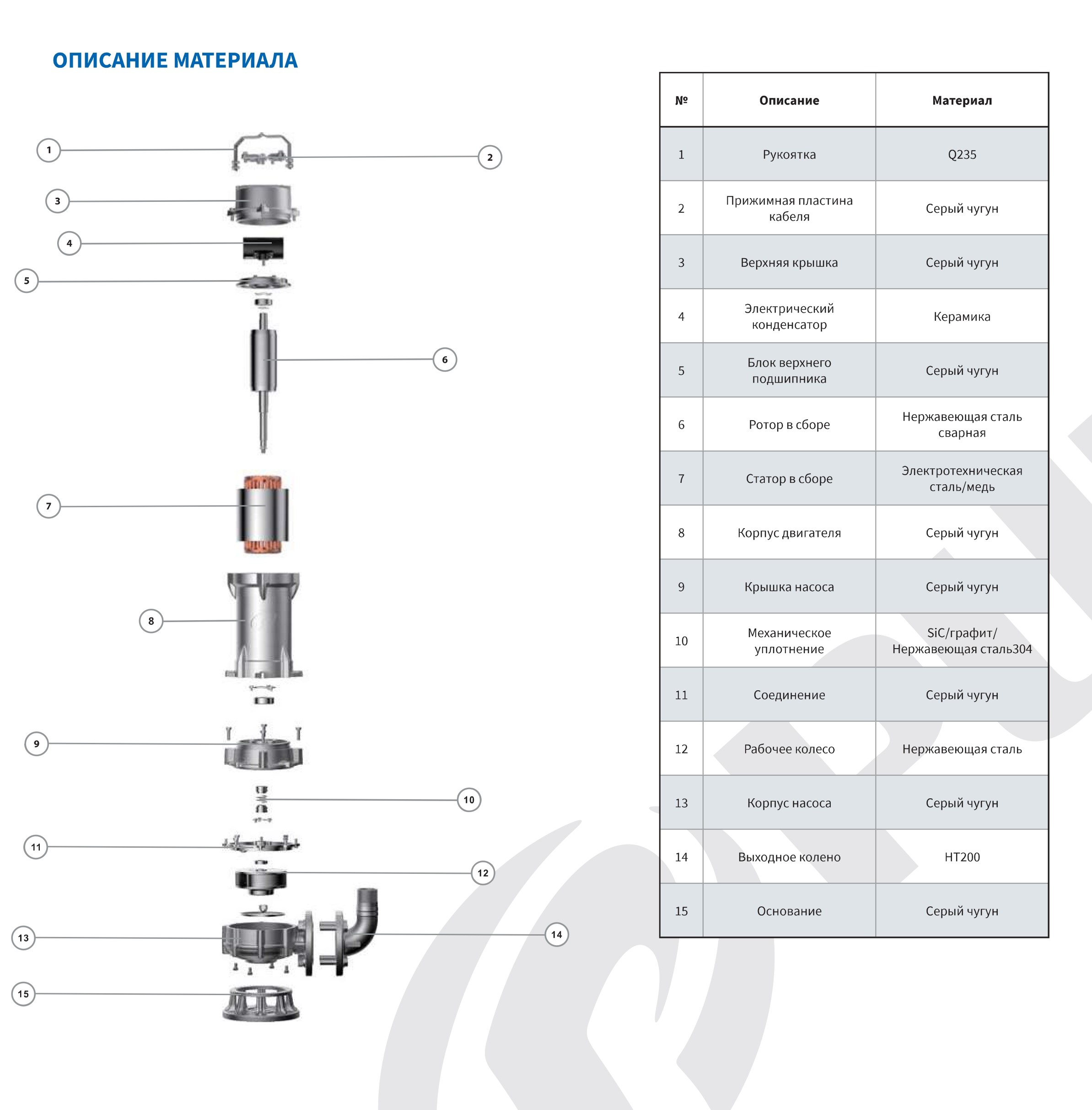 Мощность насоса Purity 150WQ180-30-30/4 составляет 30 кВт, а напряжение - 380В. Насос обеспечивает высоту напора 30 м, производительность 180 м³/ч.