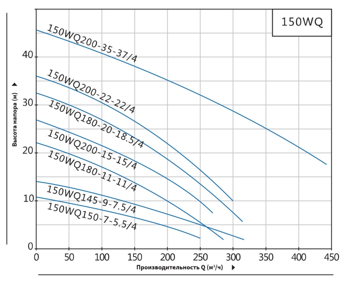 Мощность насоса Purity 150WQ200-22-22/4 составляет 22 кВт, а напряжение - 380В. Насос обеспечивает высоту напора 22 м, производительность 200 м³/ч.