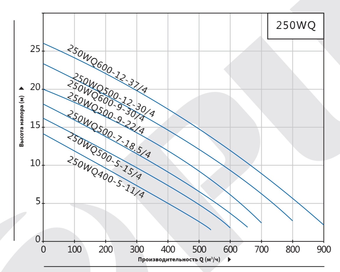 Мощность насоса Purity 250WQ600-12-37/4 составляет 37 кВт, а напряжение - 380В. Насос обеспечивает высоту напора 12 м, производительность 600 м³/ч.