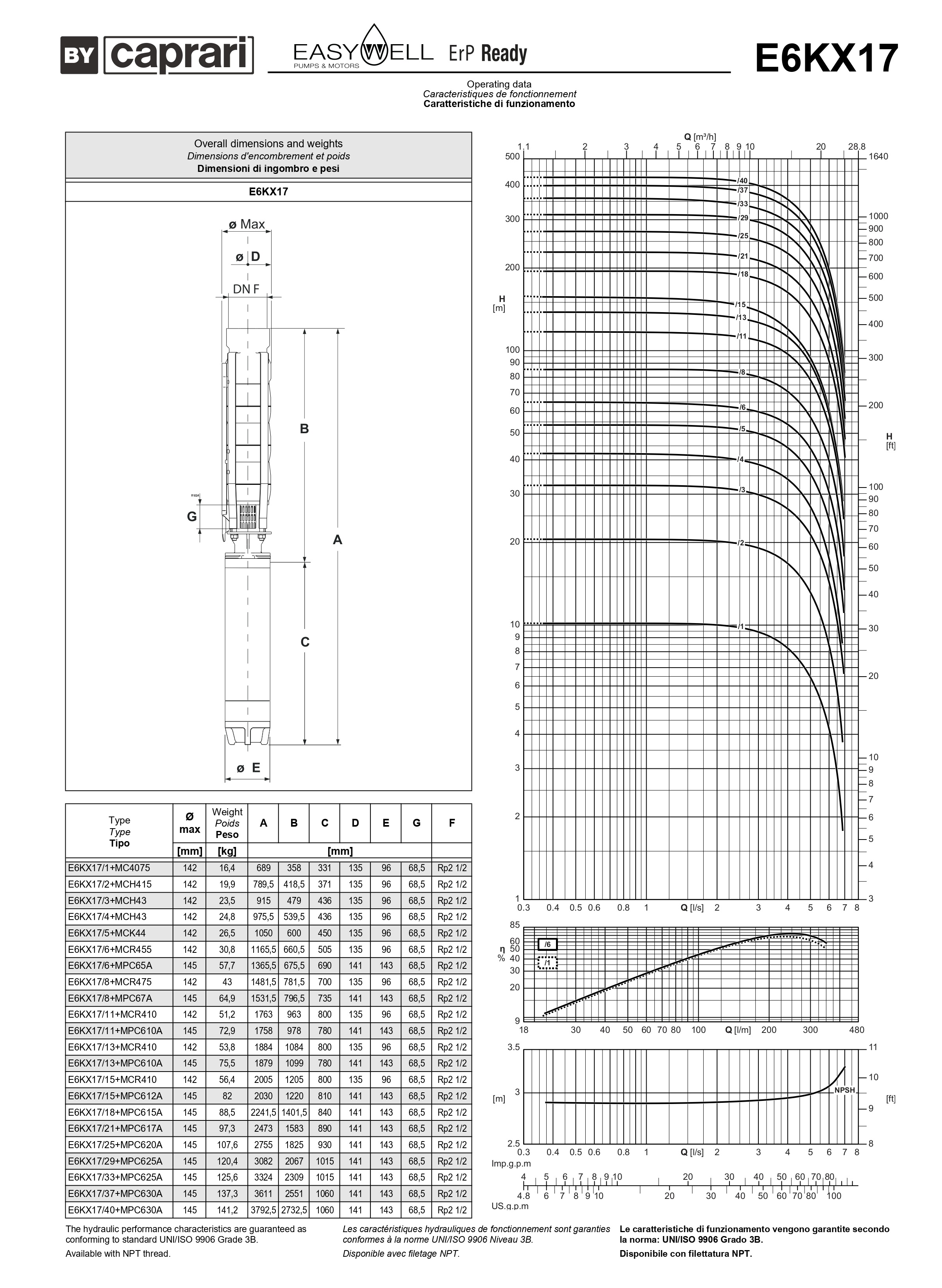 Скважинные насосы Caprari E6KX17 из нержавеющей стали