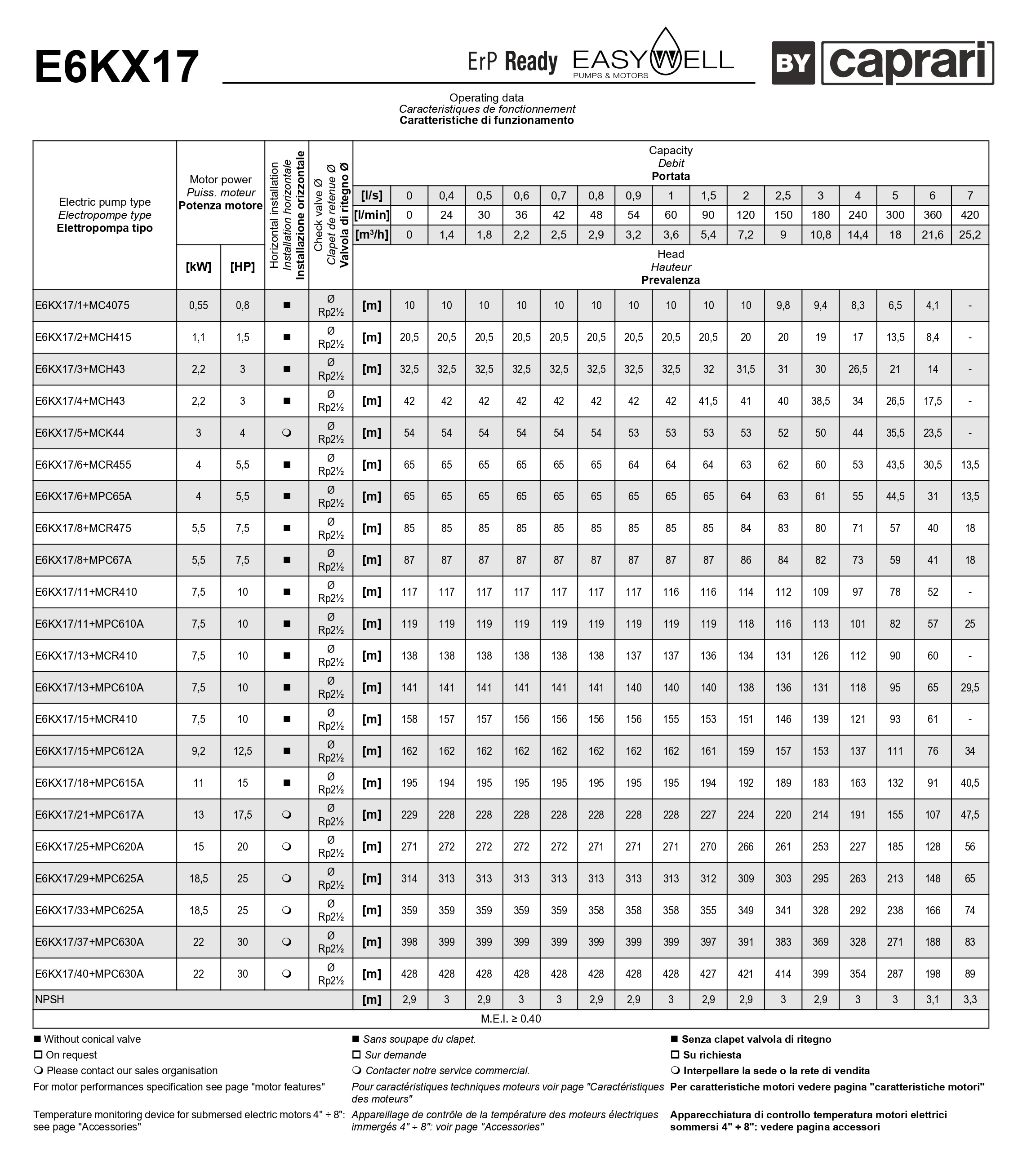 Скважинные насосы Caprari E6-E8KX из штампованной нержавеющей стали в семействе EASYWELL.Соединение с погружными двигателями серии MPC является гарантией максимальной производительности.