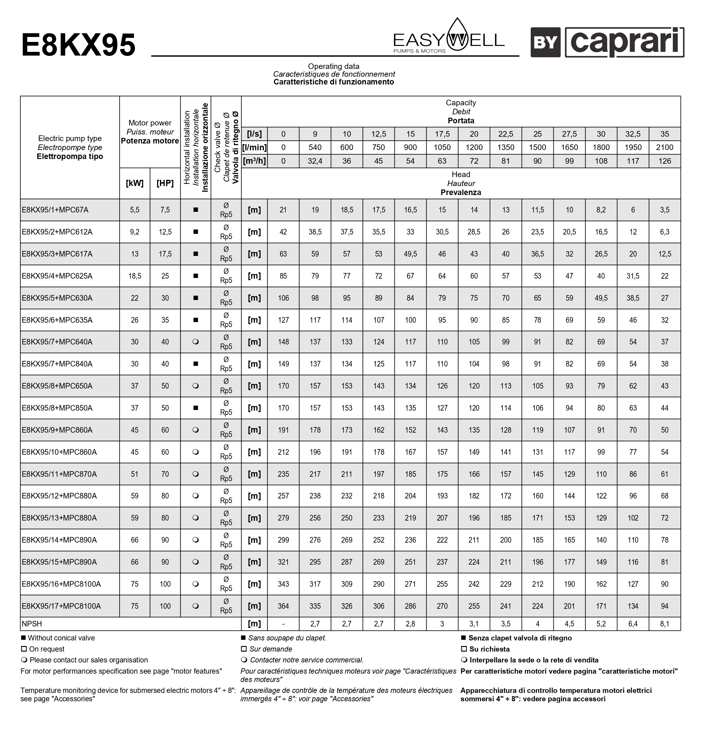 Скважинные насосы Caprari E6-E8KX из штампованной нержавеющей стали в семействе EASYWELL.Соединение с погружными двигателями серии MPC является гарантией максимальной производительности.
