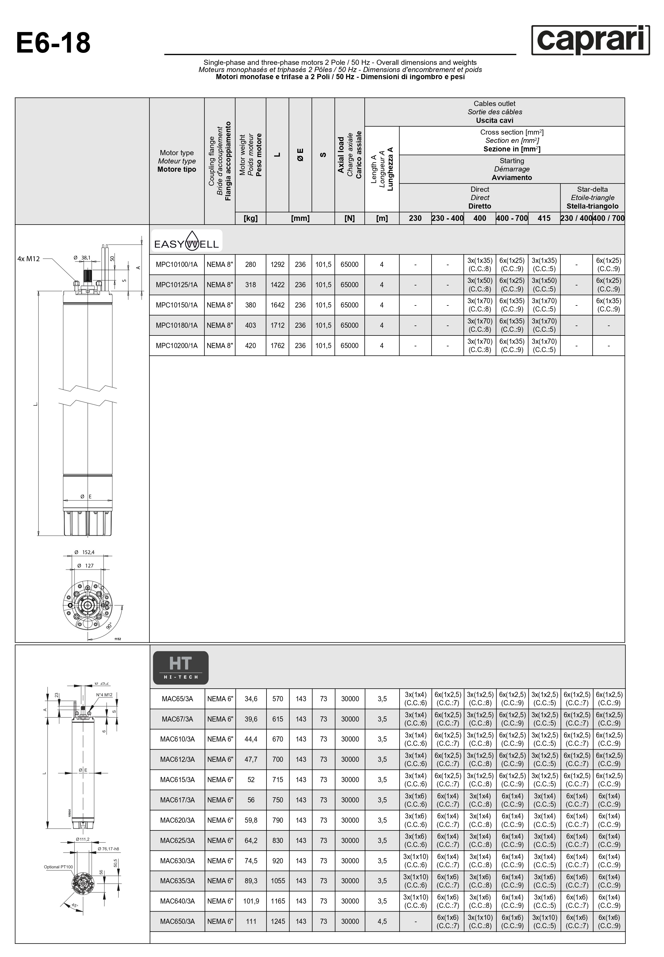 Двигатели для скважинных насосов Caprari MPC - это 6" - 10" водонаполненные перематываемые погружные двигатели семейства EASYWELL.Дизайн и электрический проект Caprari являются гарантией прочности и надежности с течением времени.