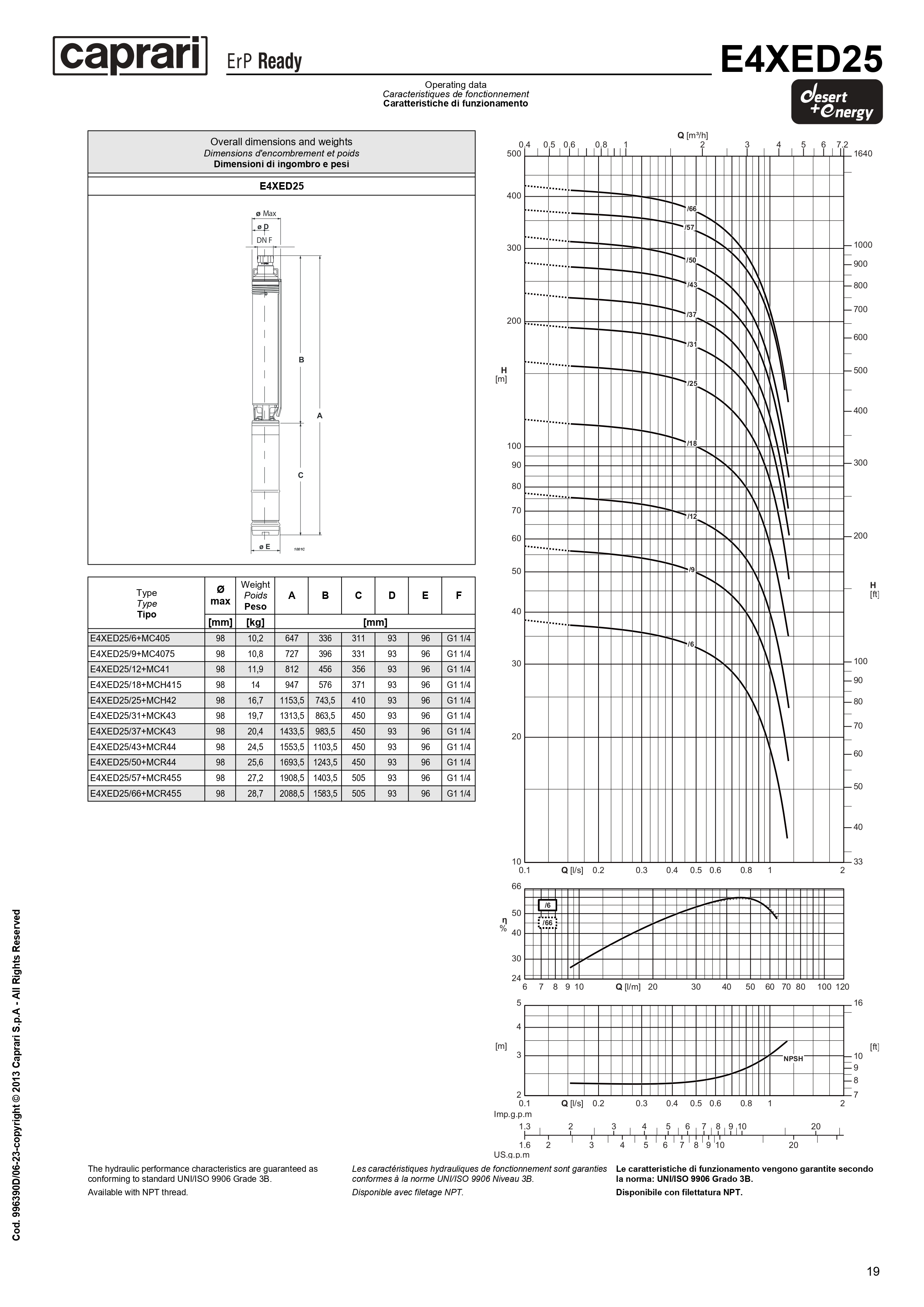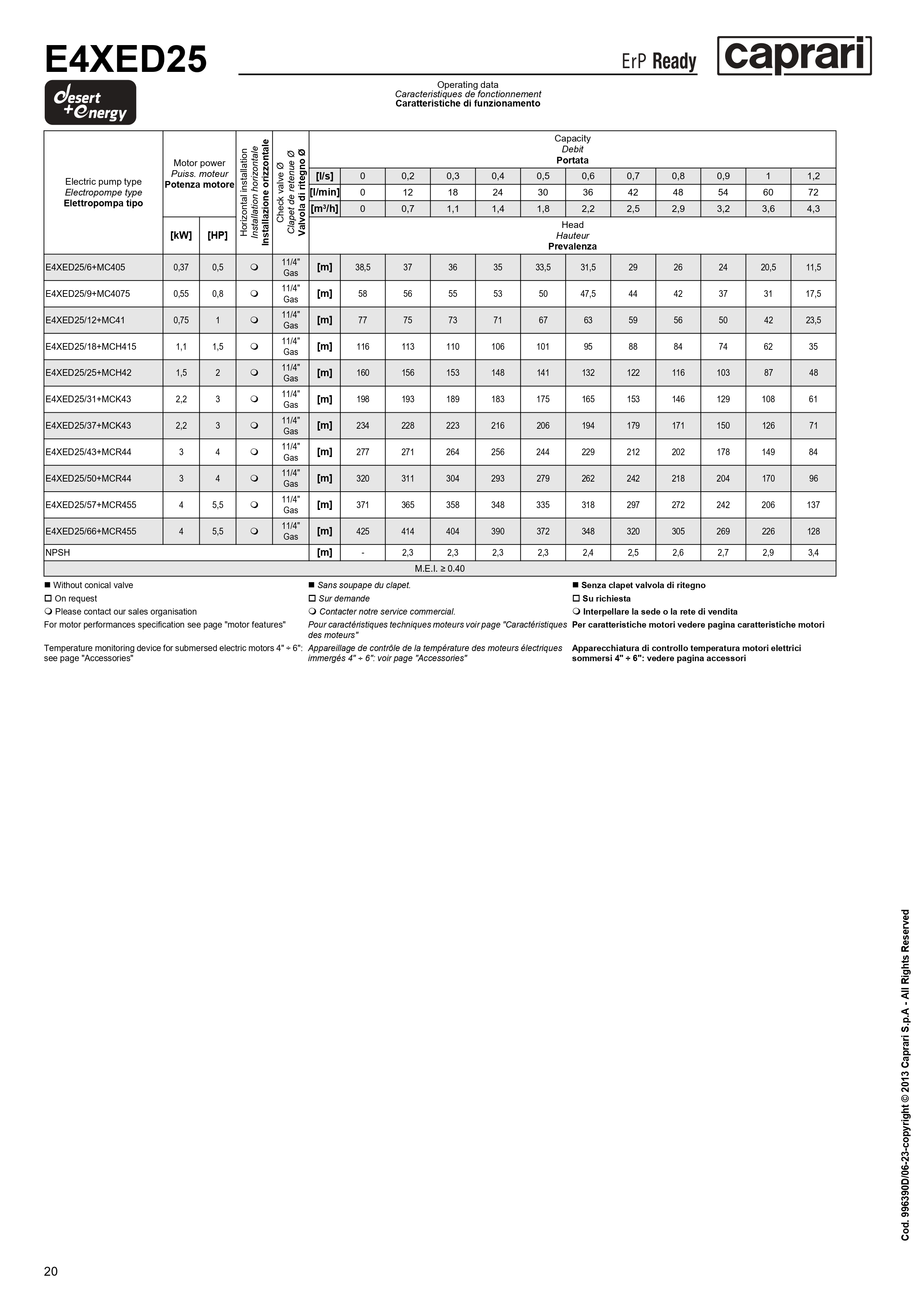Скважинные насосы Caprari для воды с большим содержанием песка DESERT ENERGY E4XED25