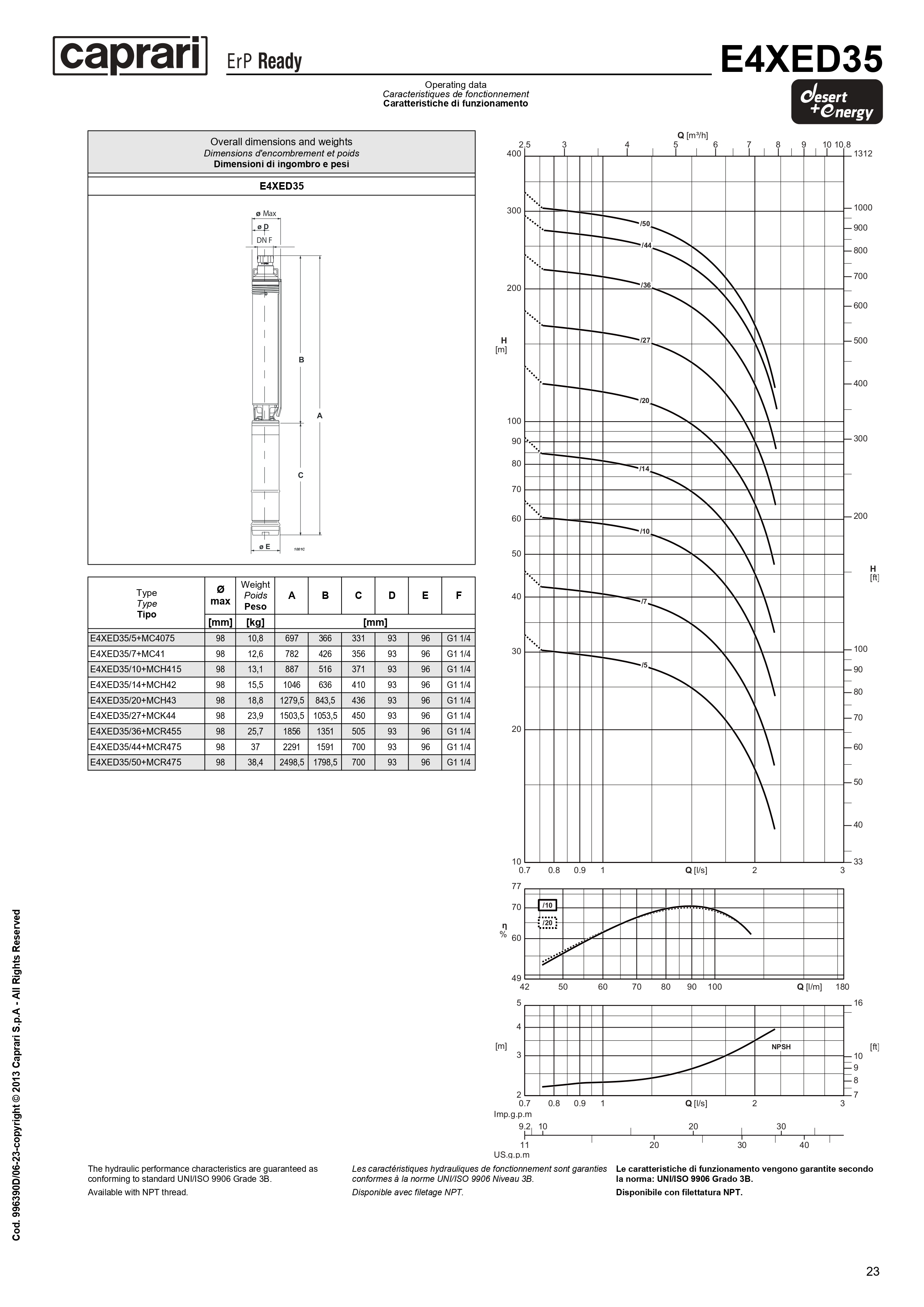 Скважинные насосы Caprari для воды с большим содержанием песка DESERT ENERGY E4XED30