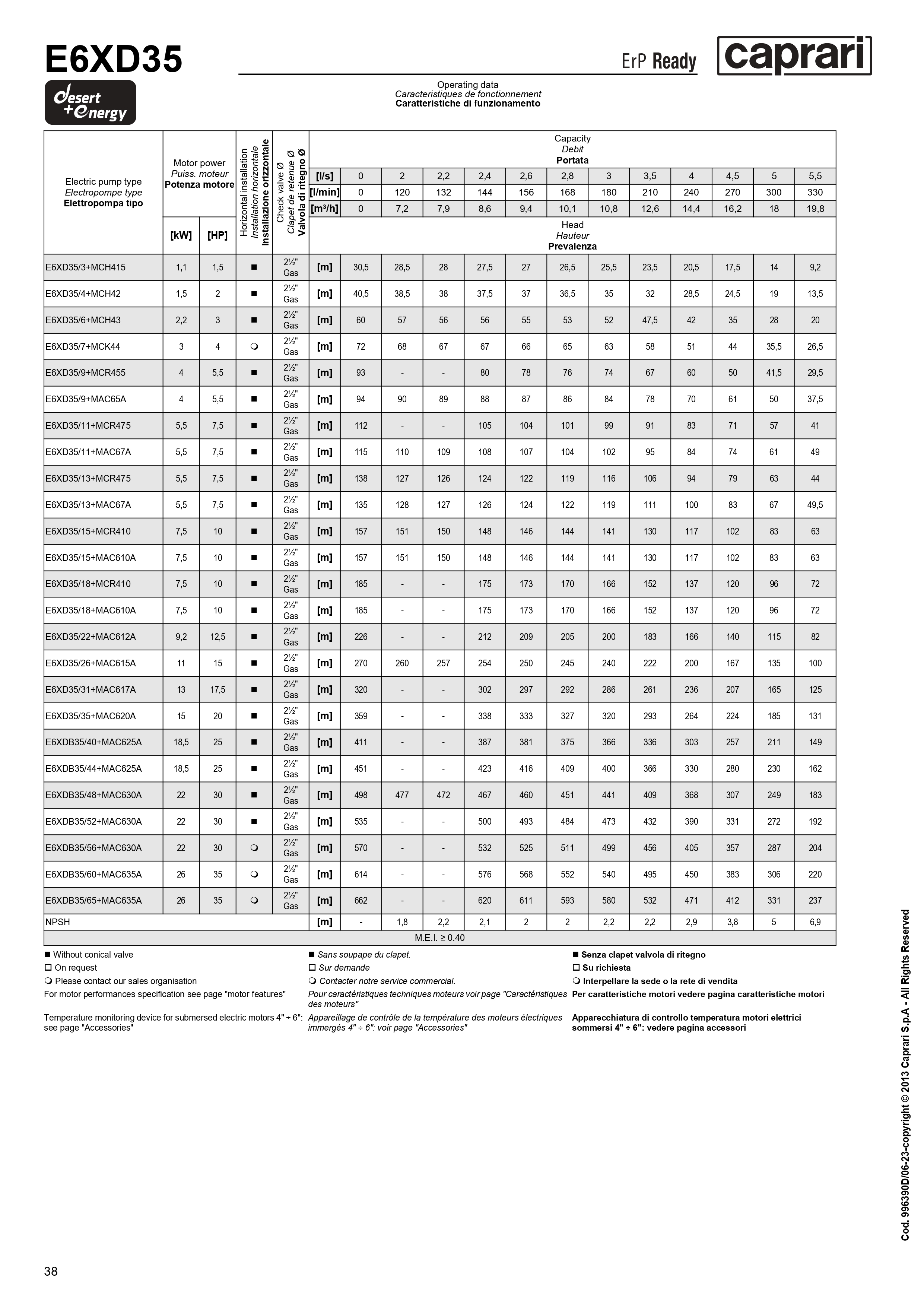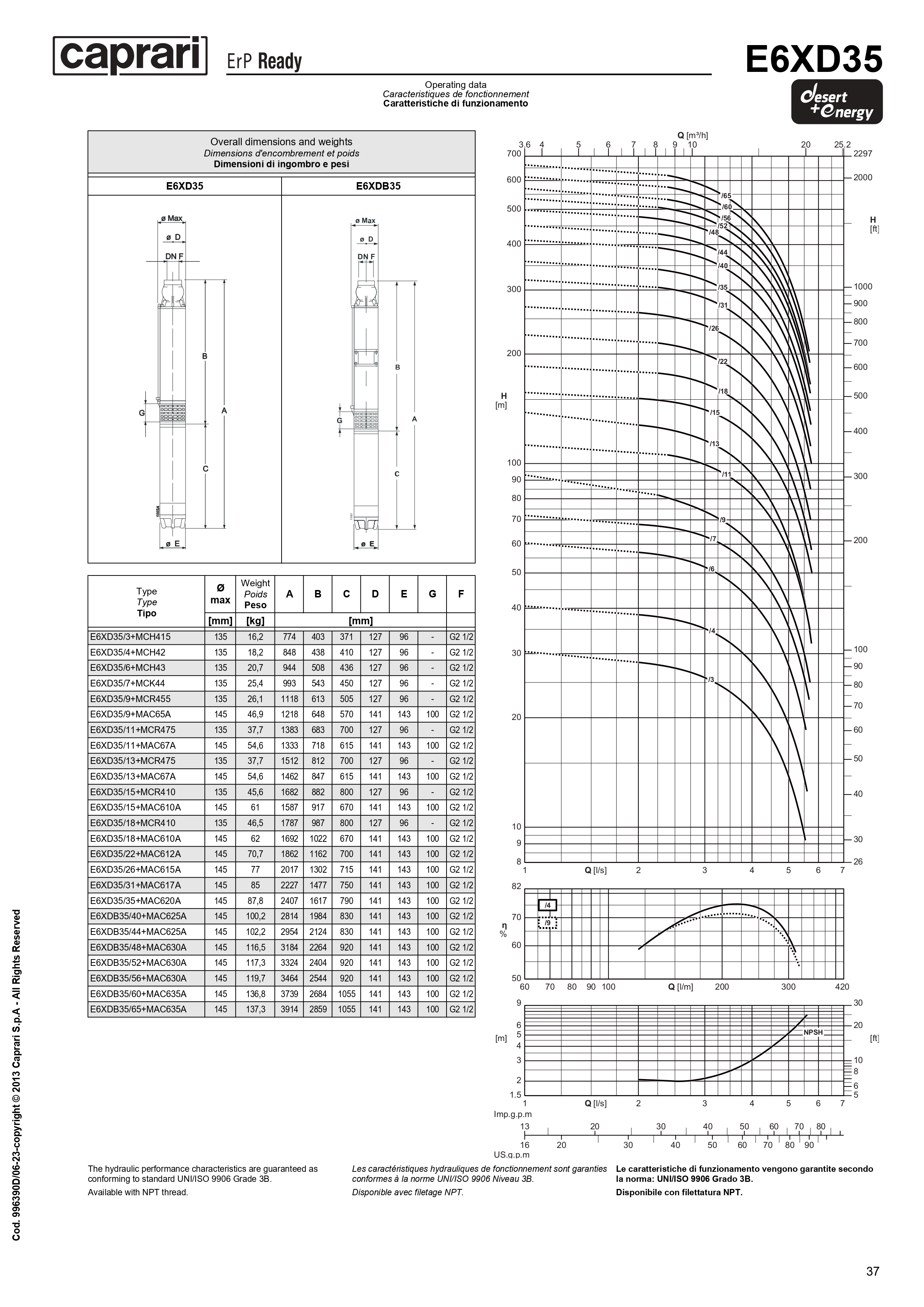 Скважинные насосы Caprari для воды с большим содержанием песка DESERT ENERGY E6XD35