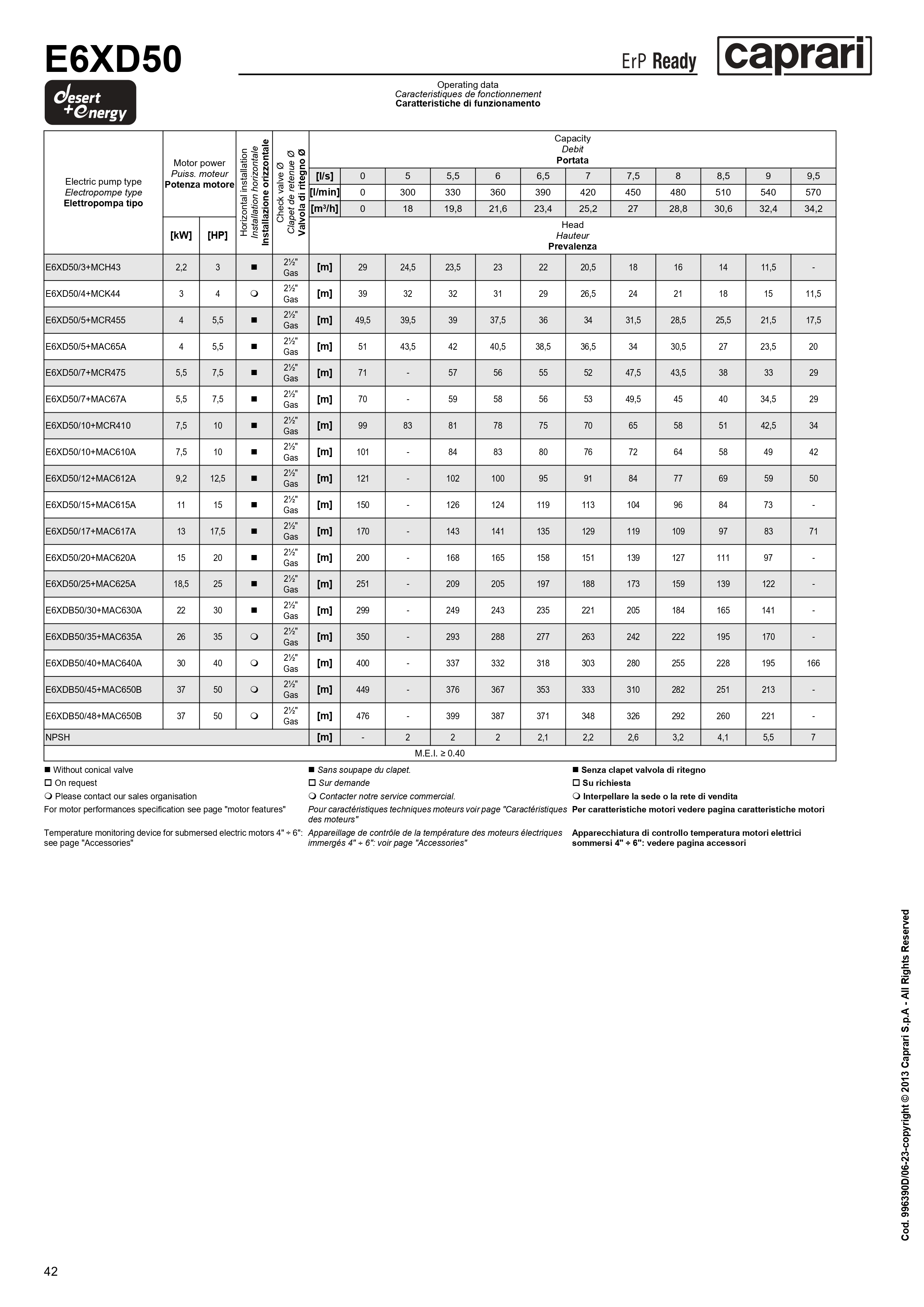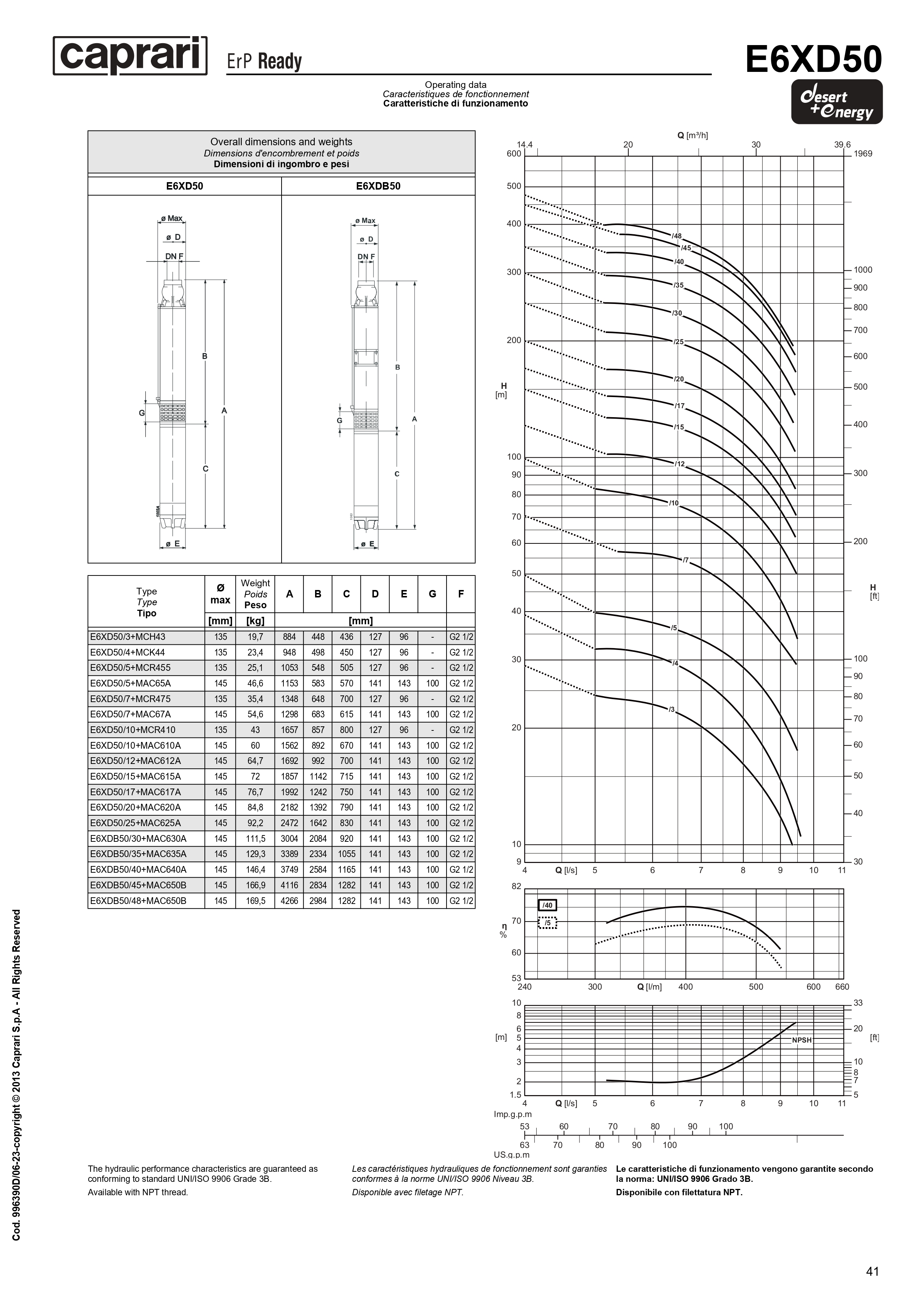 Скважинные насосы Caprari для воды с большим содержанием песка DESERT ENERGY E6XD50