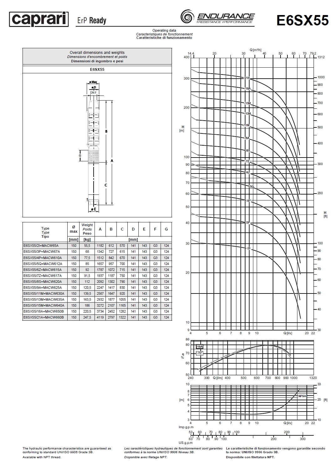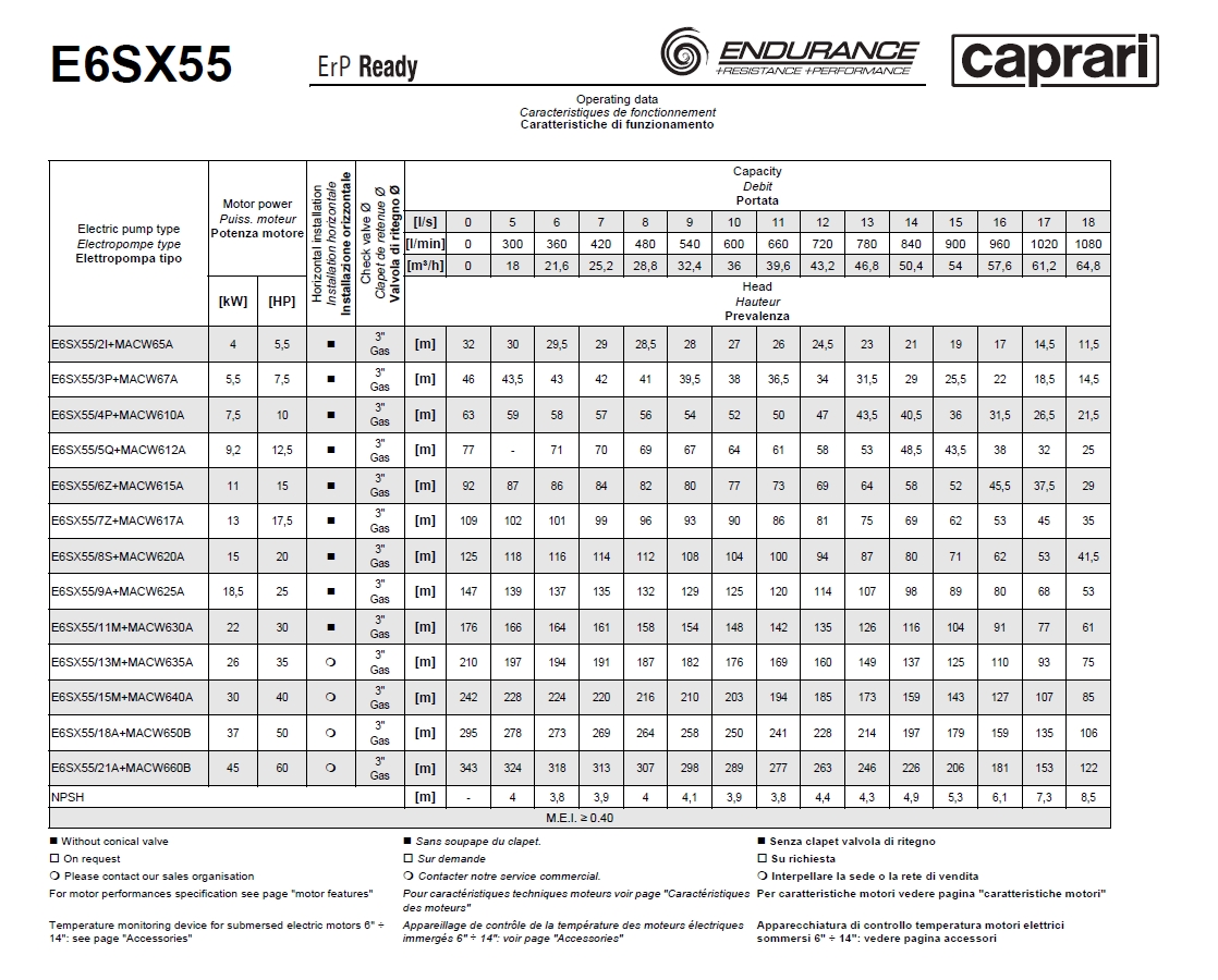 Скважинные насосы Caprari E6SX55 из нержавеющей стали