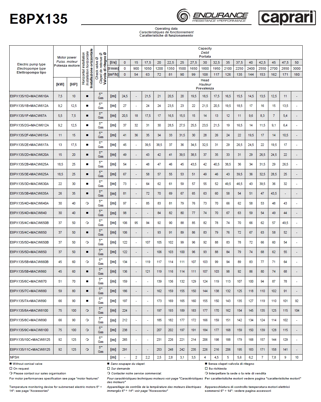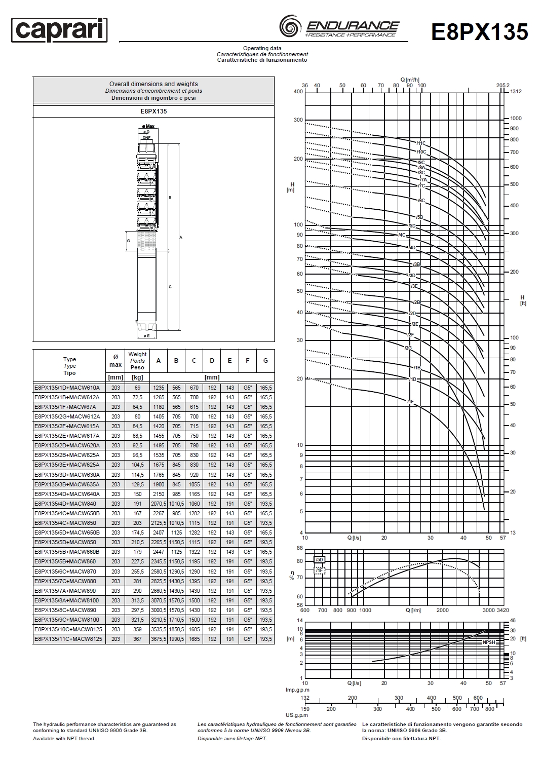 Скважинные насосы Caprari E8PX135 из нержавеющей стали