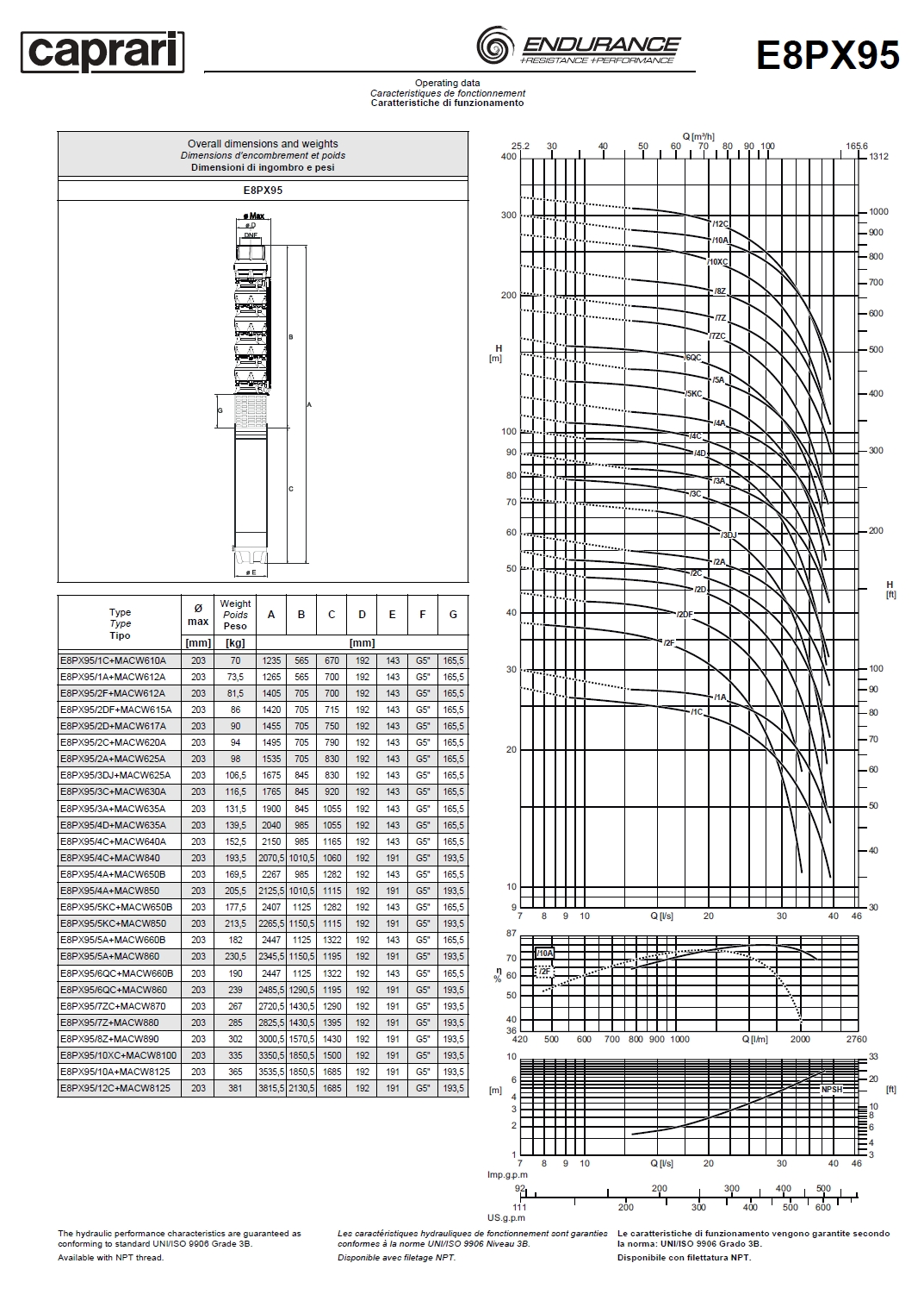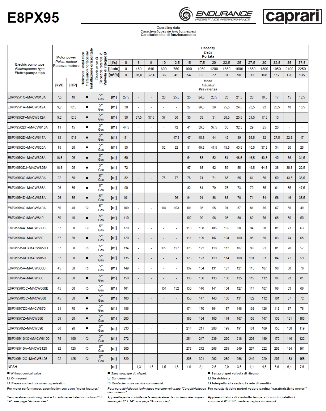 Скважинные насосы Caprari E8PX95 из нержавеющей стали