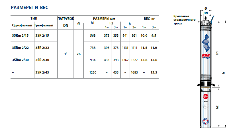 Скважинный насос Pedrollo 3SR сконструирован для перекачивания воды и прочих неагрессивных жидкостей с содержанием песка не превышающим 150 г/куб.м. Высокая надежность и безупречный рабочий процесс насоса доказаны в ходе многократных испытаний.