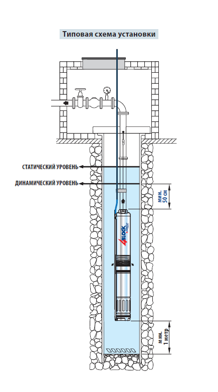 - Рекомендуется для подачи из скважин чистой, с содержанием песка не более 150 г/м³, воды.