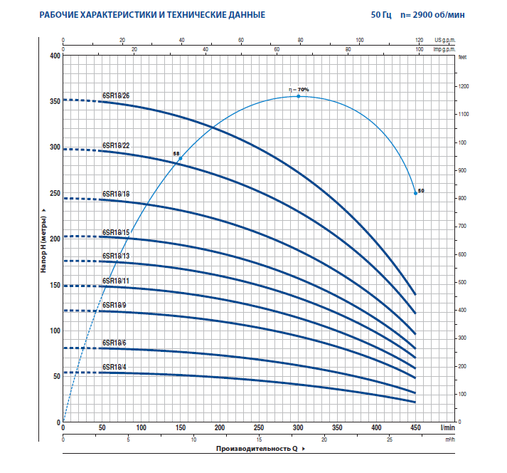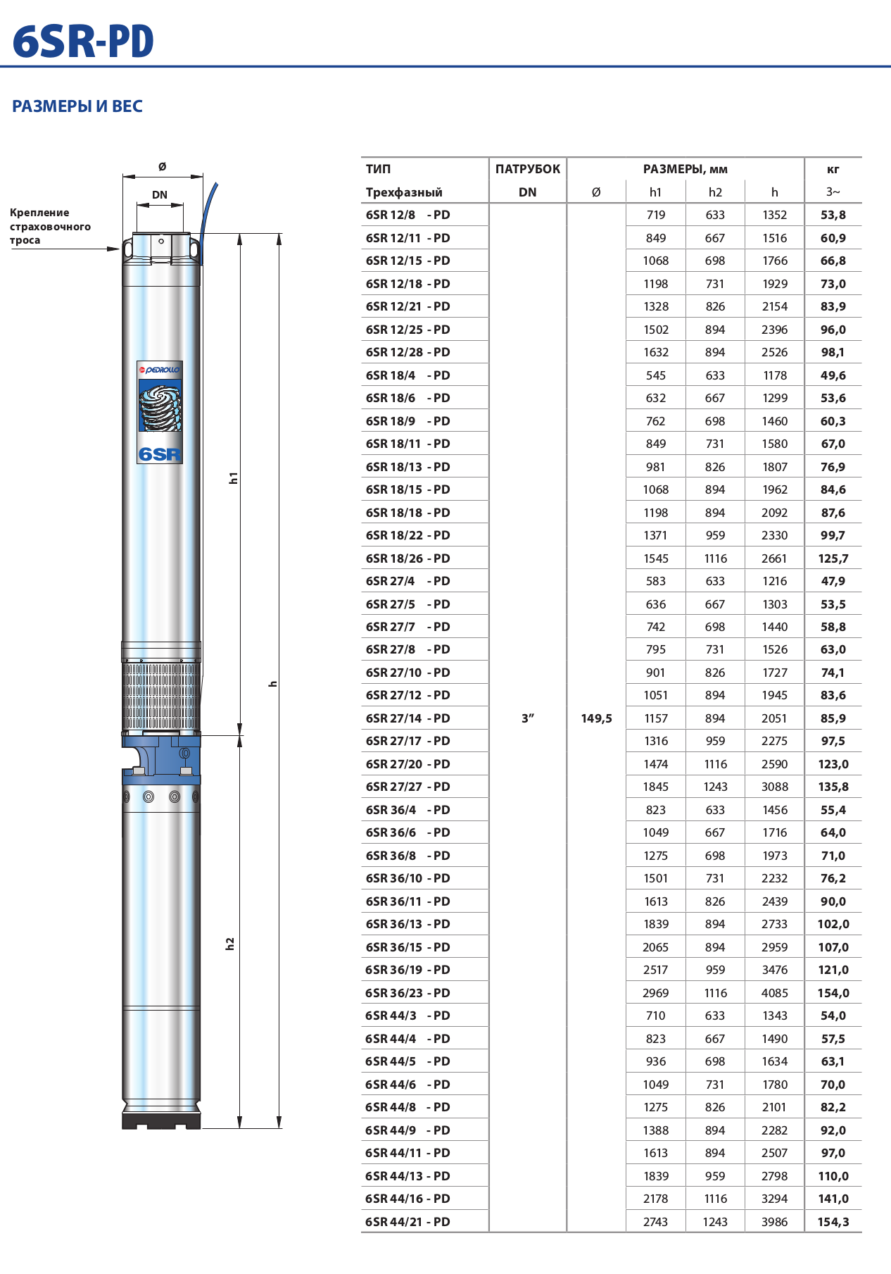 Скважинный 6-ти дюймовый насос Pedrollo 6SR – это высокоэффективное оборудование, предназначенное для работы в шестидюймовых скважинах. Оно обеспечит подъем значительных объемов чистой воды с большой глубины. Аппаратура прекрасно подходит как для бытовых нужд (организация водоснабжения загородных домов, коттеджей, дач, эксплуатация в составе систем пожаротушения), так и для использования в коммунальном хозяйстве (обслуживание многоквартирных домов). Кроме этого за счет высоких показателей напора и производительности насосы 6SR находят широкое применение в промышленной сфере.Аппараты применяются на глубине до 371 м.