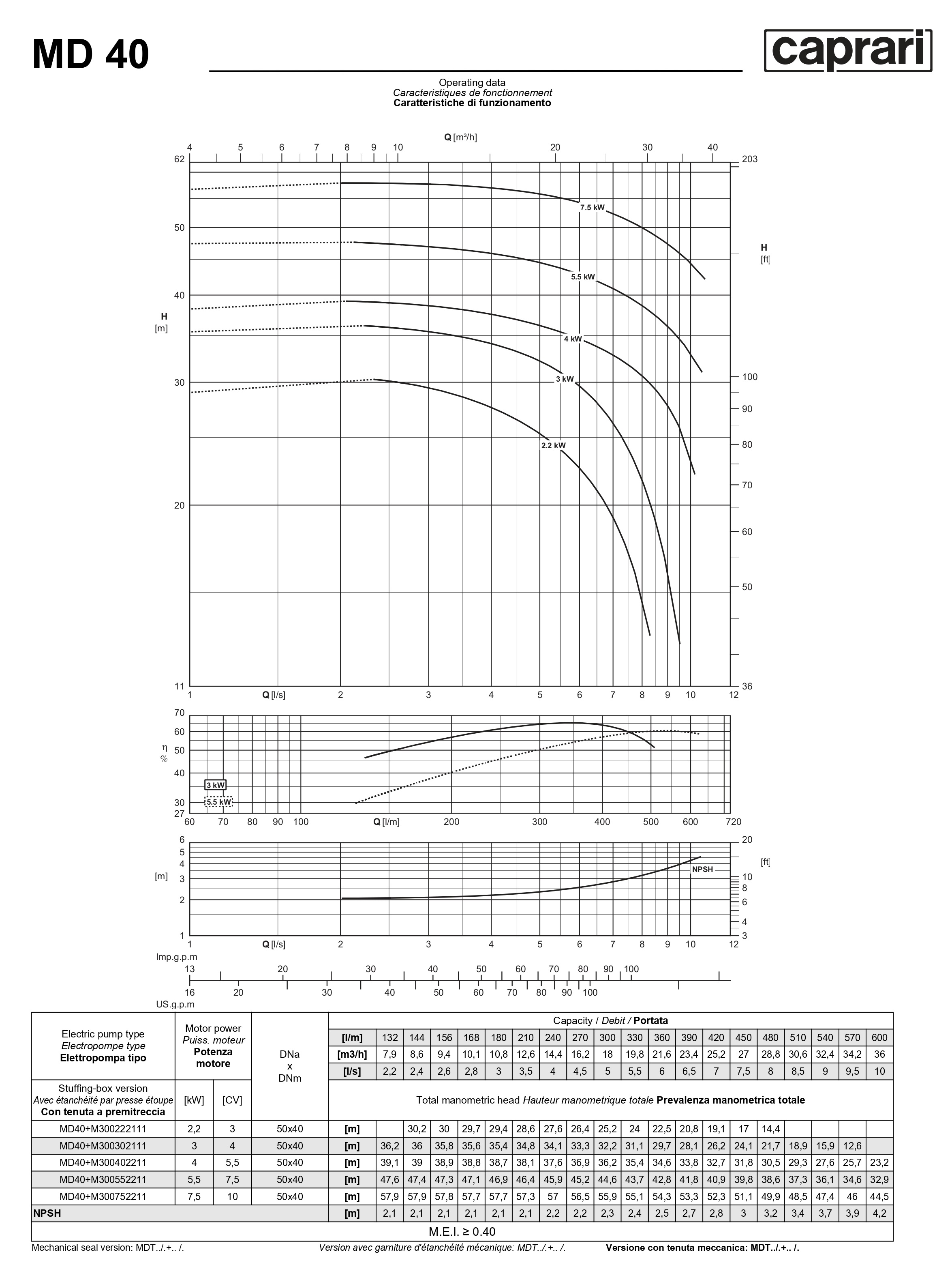 Горизонтальные многоступенчатые насосы Caprari MD 40