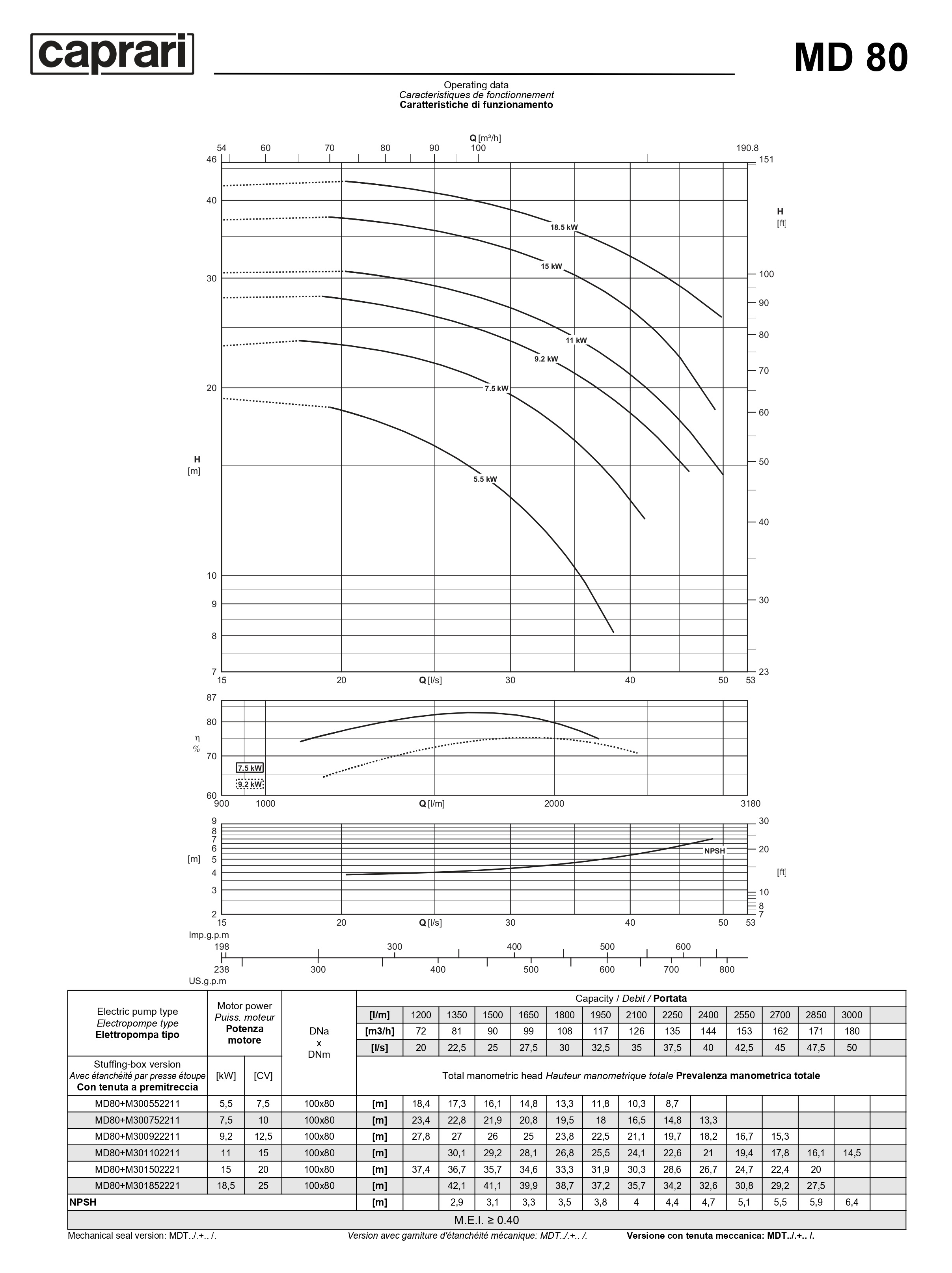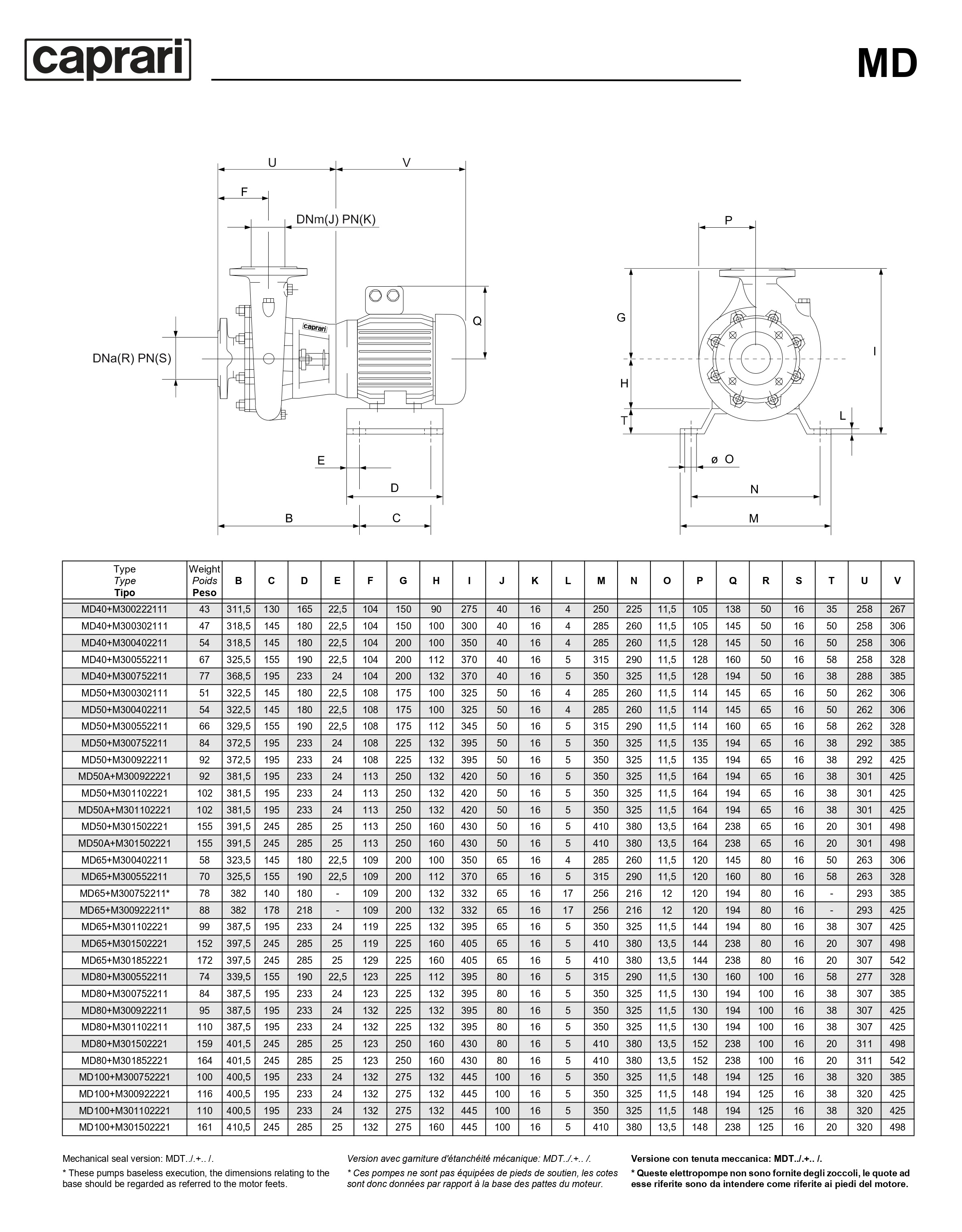 Горизонтальные многоступенчатые насосы Caprari серии MD изготовленные из прочной чугунной конструкции, они соединены с 2-полюсными трехфазными асинхронными электродвигателями.