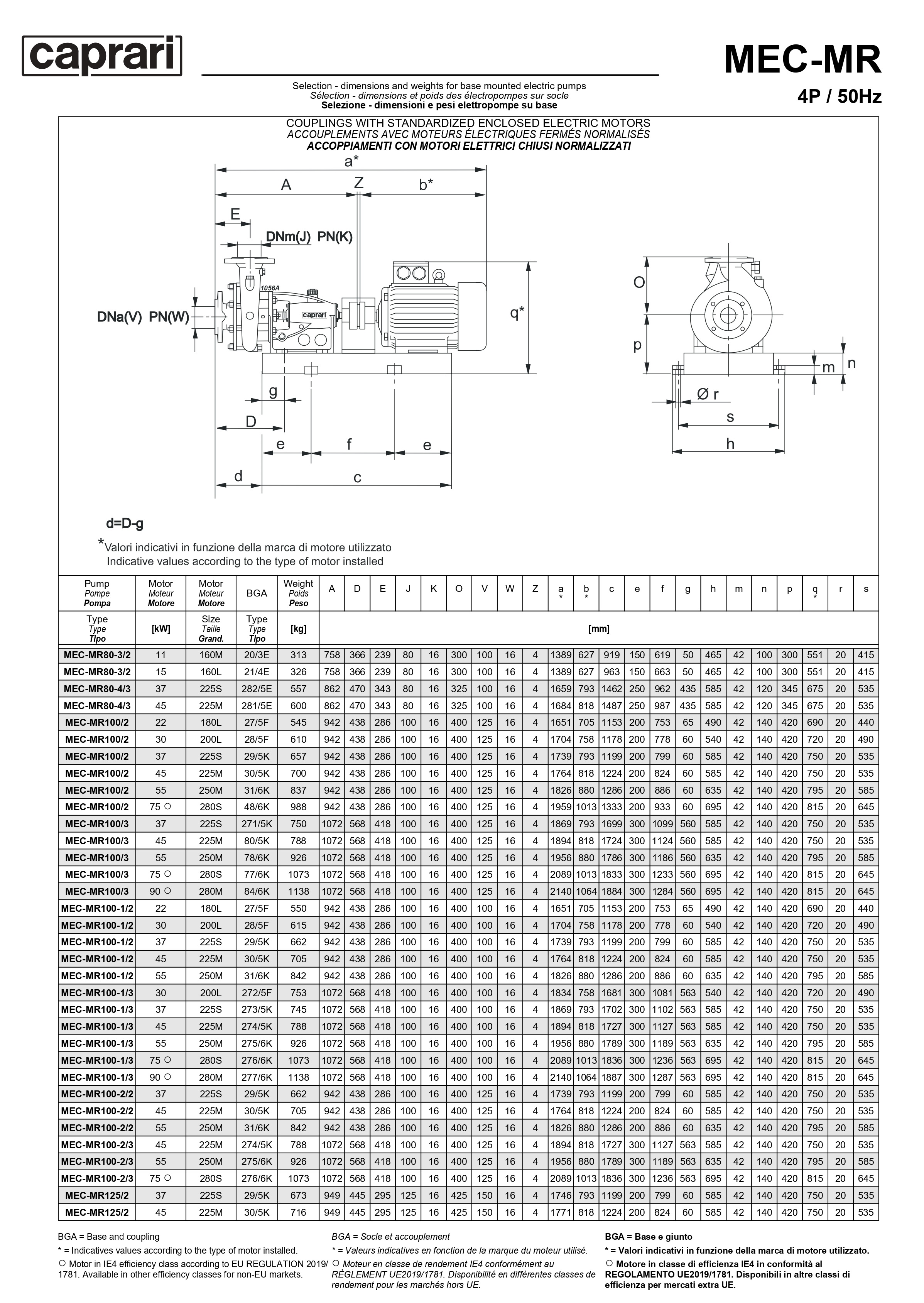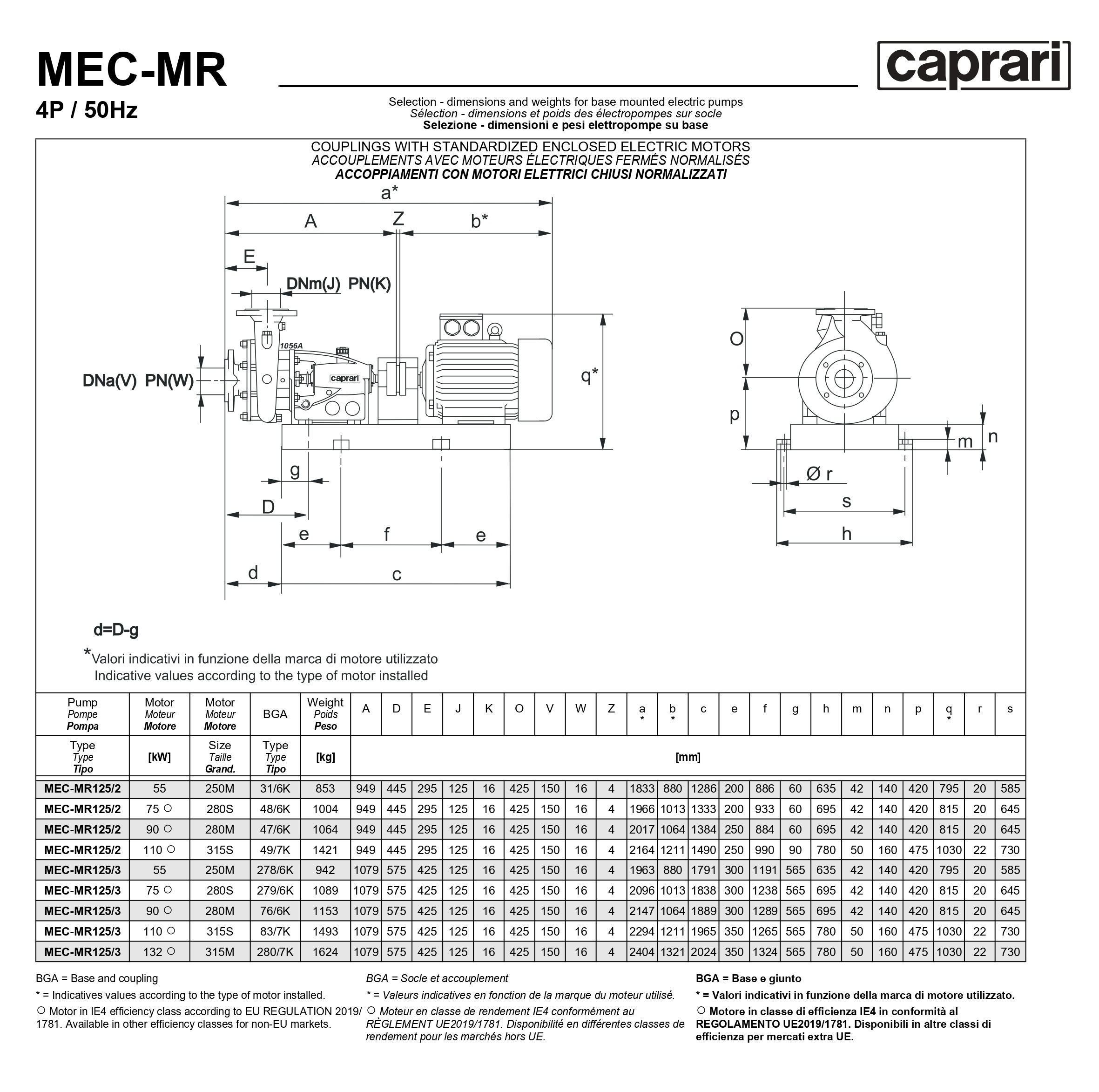 Горизонтальные многоступенчатые насосы Caprari серии MEC-MR могут быть соединены как с двигателями, так и с электродвигателями с 2 и 4 полюсами.Доступны как уплотнения, так и механические уплотнения.