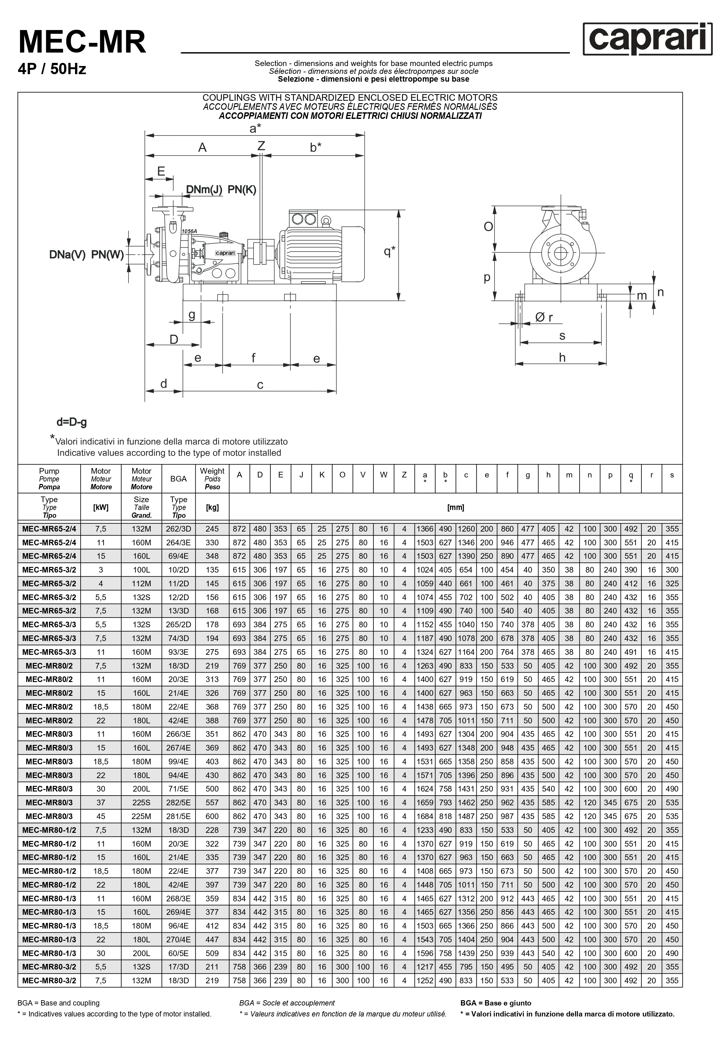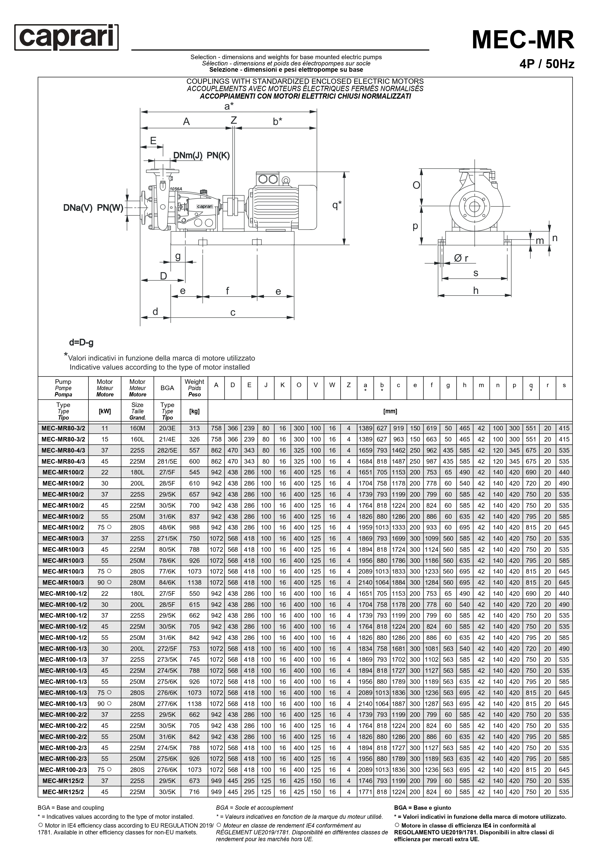 Горизонтальные многоступенчатые насосы Caprari серии MEC-MR могут быть соединены как с двигателями, так и с электродвигателями с 2 и 4 полюсами.Доступны как уплотнения, так и механические уплотнения.