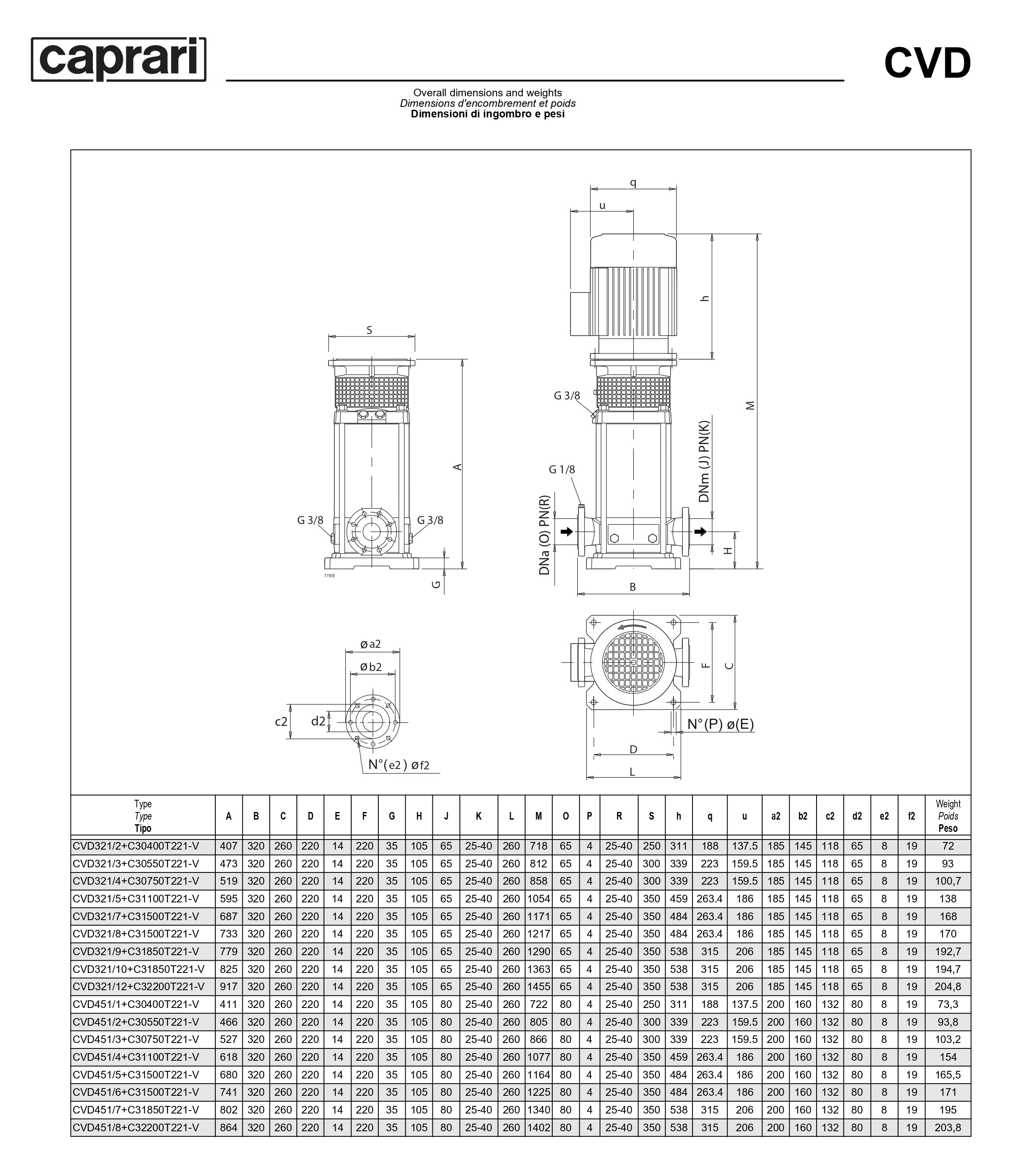 Вертикальные многоступенчатые насосы Caprari CVD 321 из нержавеющей стали