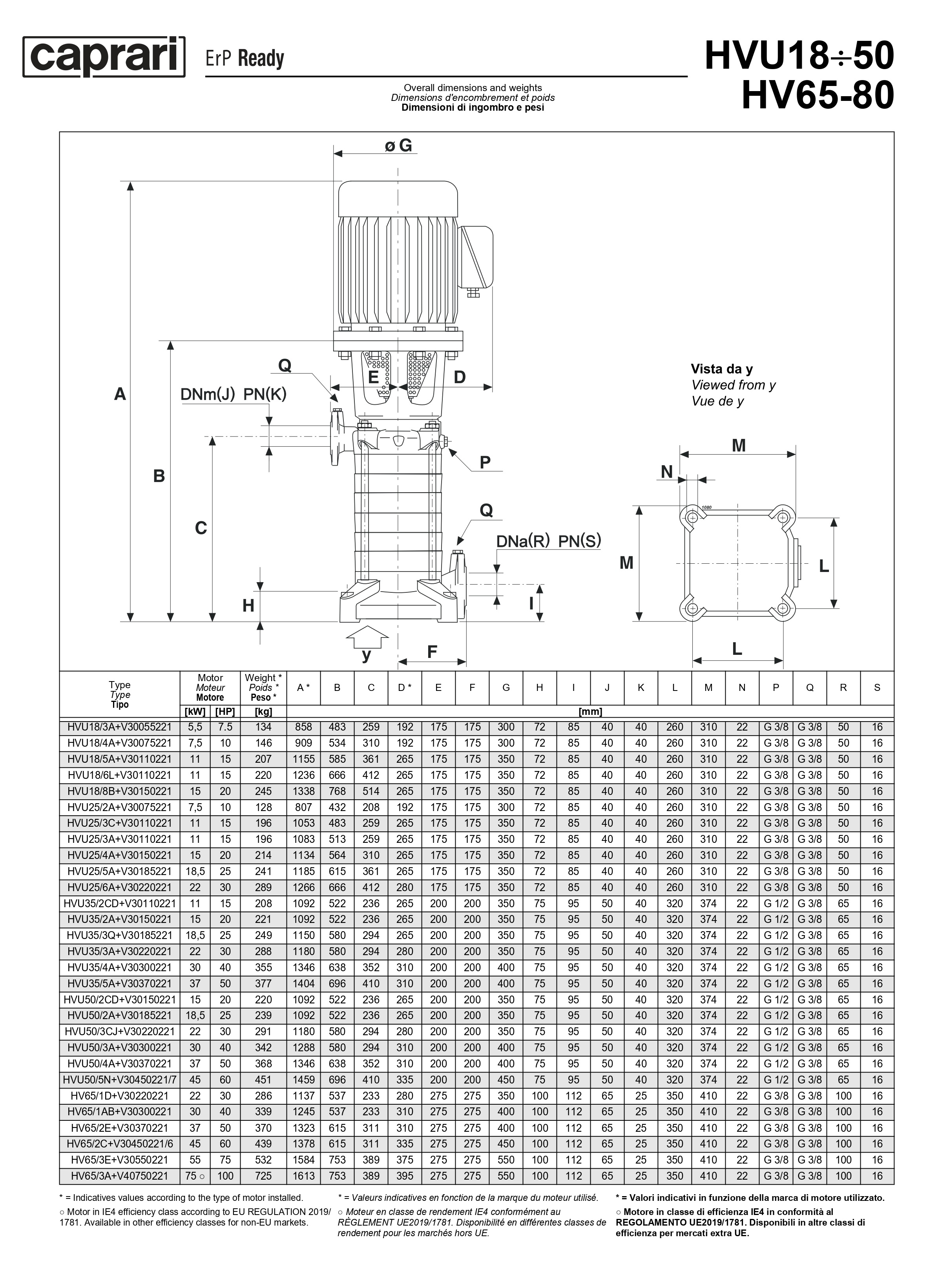 Вертикальные многоступенчатые насосы Caprari HVU 18