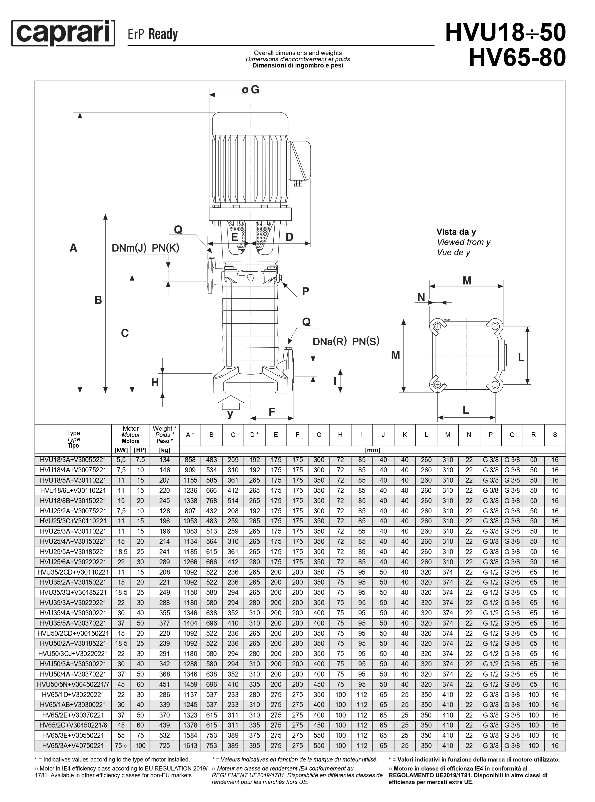 Вертикальные многоступенчатые насосы Caprari HVU 50