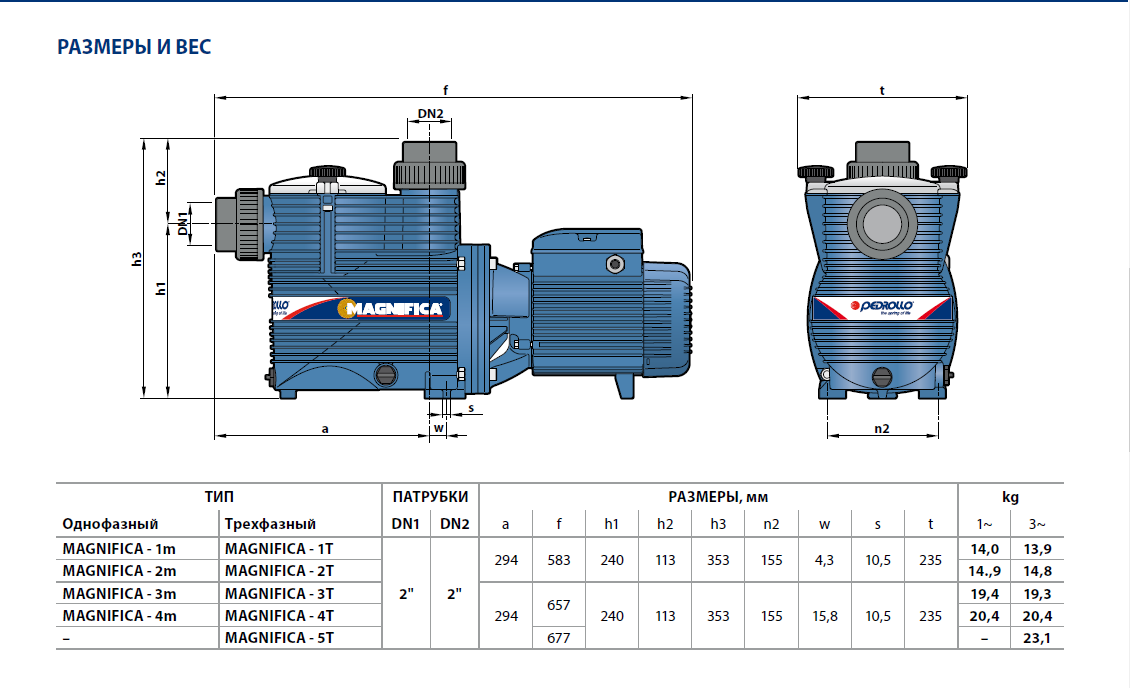 Pedrollo MAGNIFICA 1 — центробежный горизонтальный самовсасывающий насос для бассейна, предназначенный для бытовых и общественных бассейнов.Насос Pedrollo MAGNIFICA 1 может эксплуатироваться при pH воды от 6,5 до 8,4.