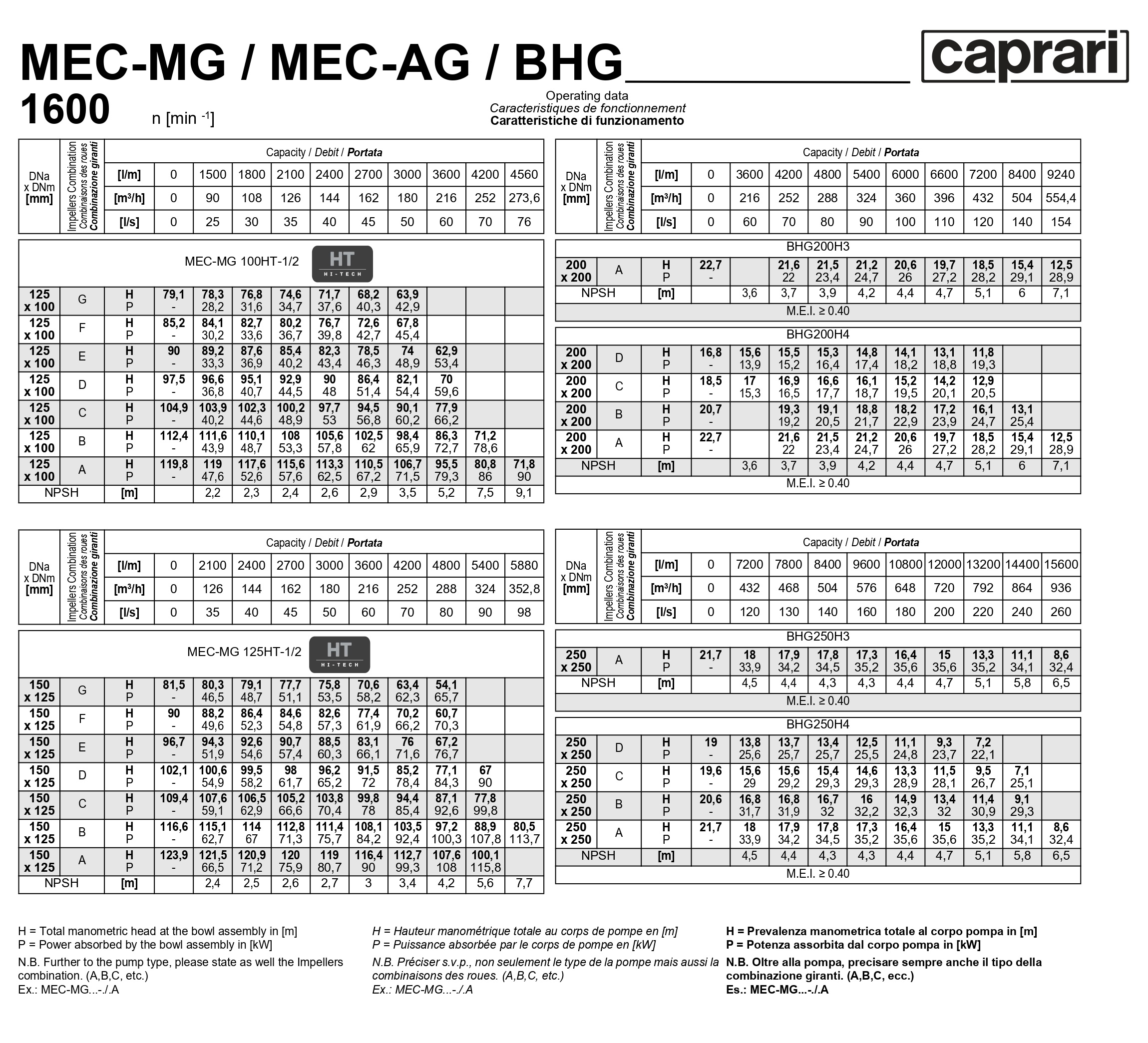 Фланцевый насос Caprari MEC-MG, MEC-AG, BHG 1600 для дизельного двигателя