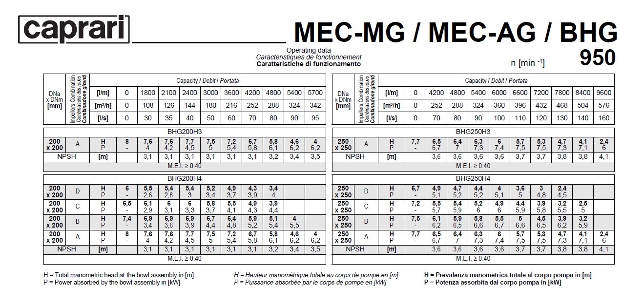 Фланцевый насос Caprari MEC-MG, MEC-AG, BHG 950 для дизельного двигателя